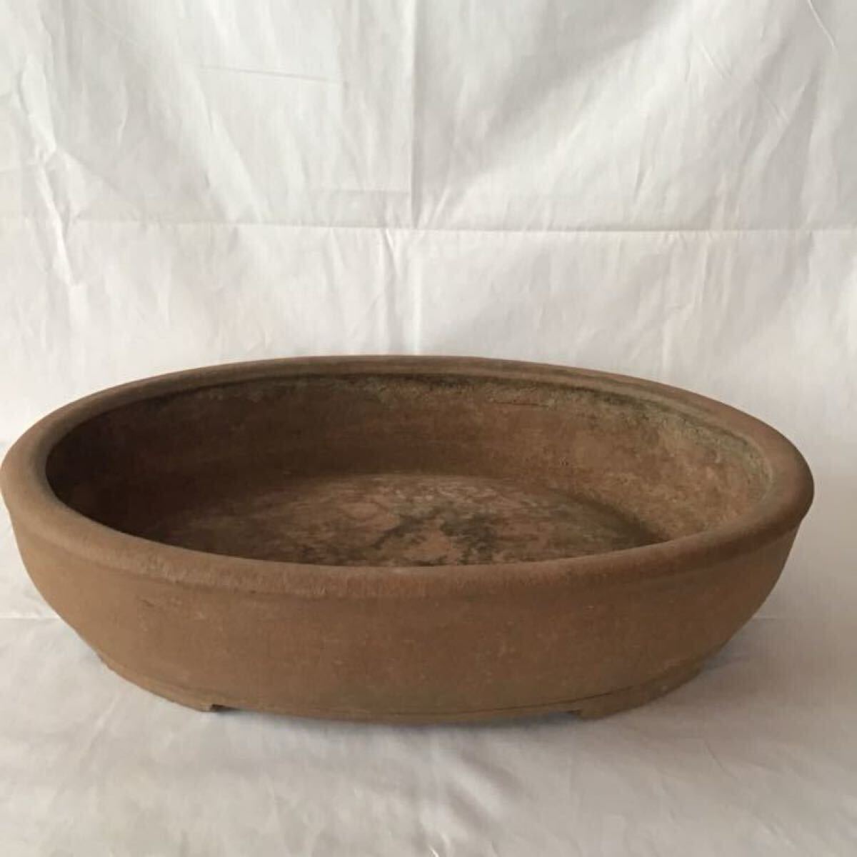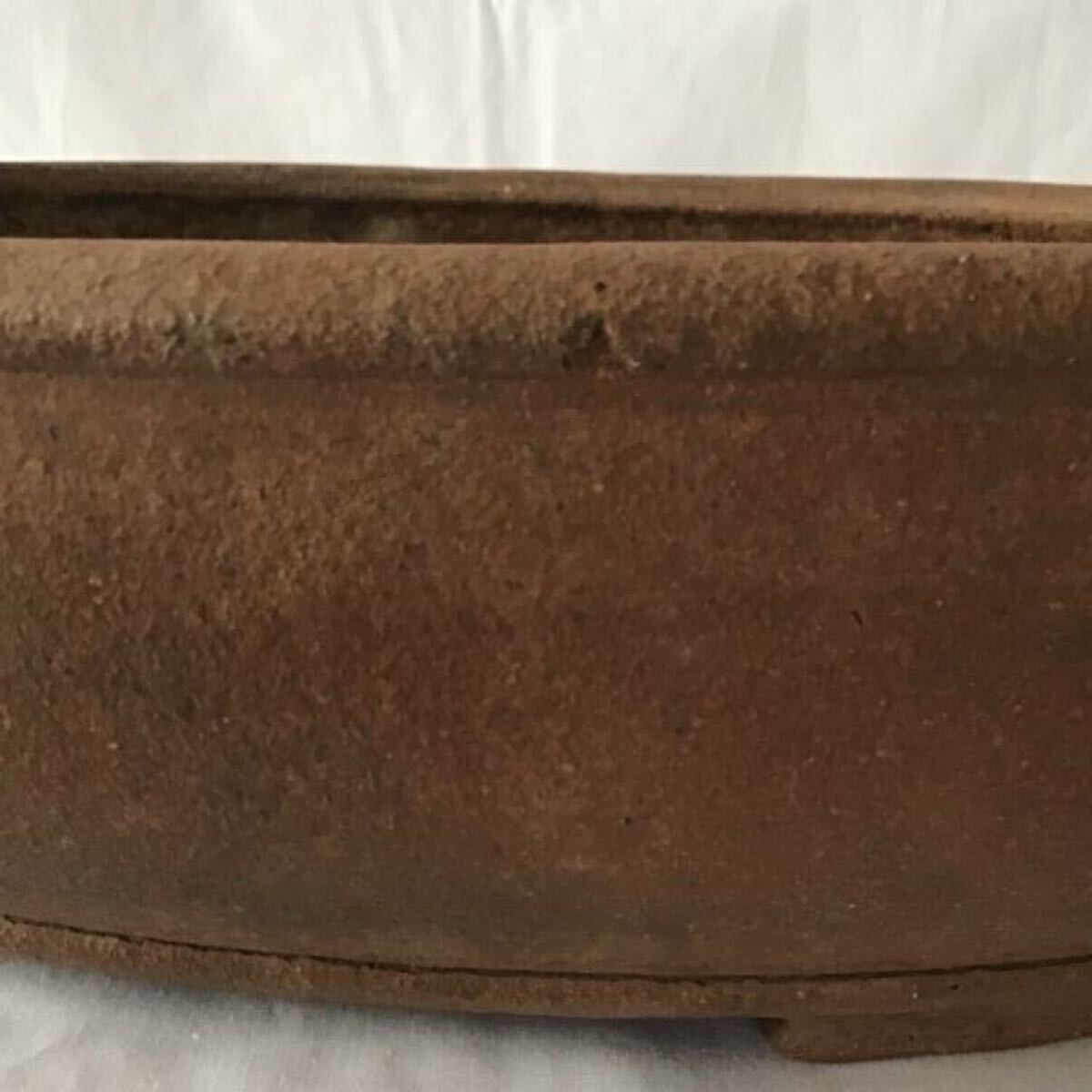 商品名:時代物 希少 蔵出し【古渡 中国古鉢 古盆栽鉢 『葛明祥造 』在銘 紫泥玉縁楕円鉢】