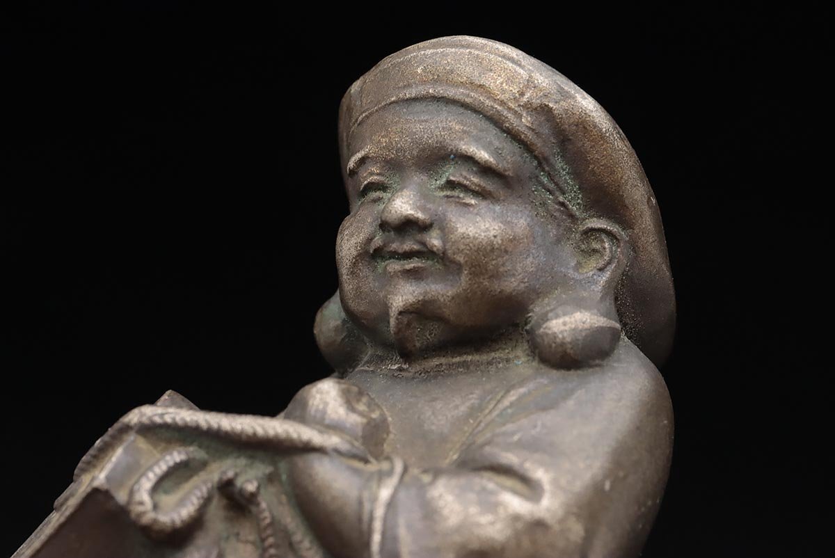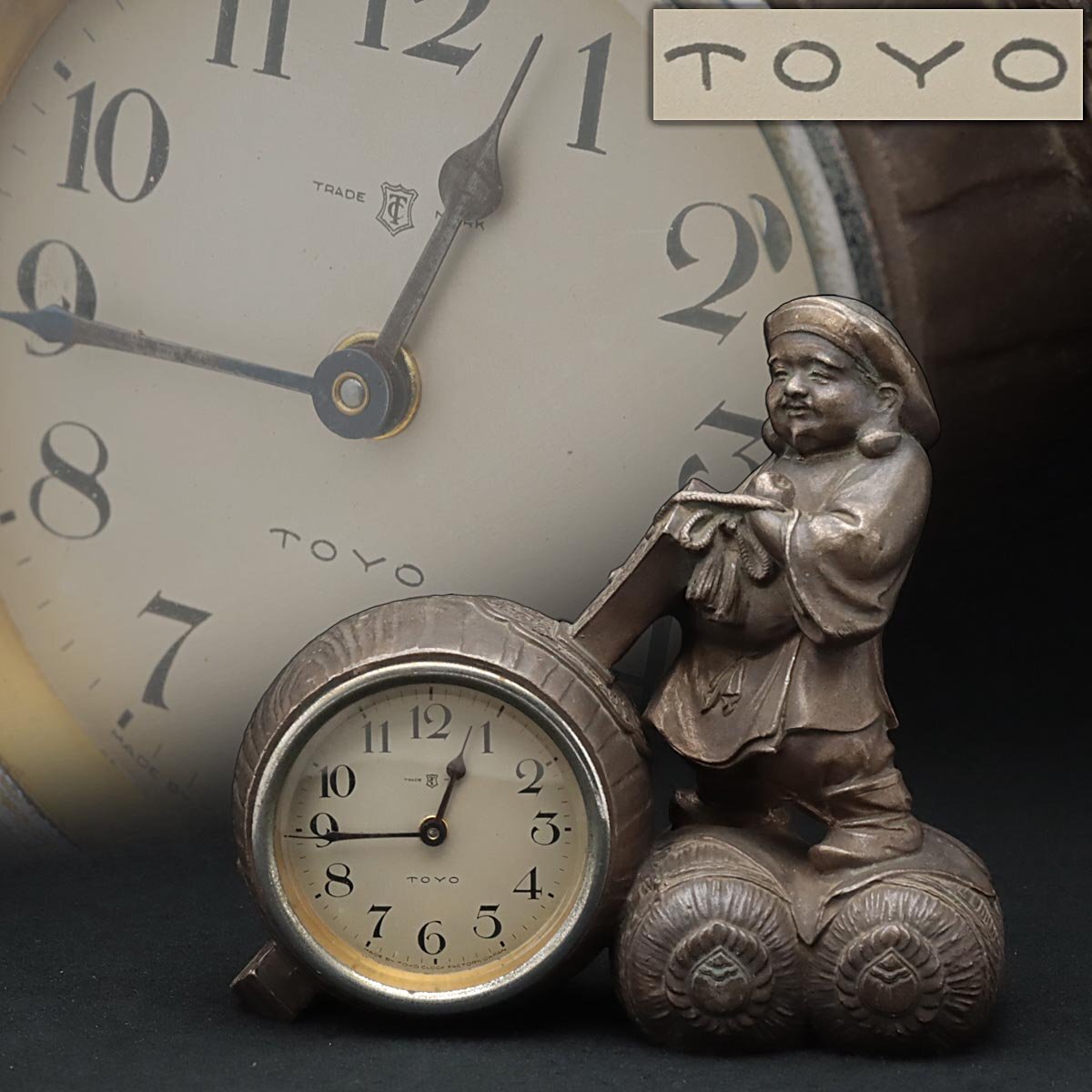 | ◆ 時代金工【TOYO】東洋時計 銅合金製「大黒天」置時計 幅17.5cm 重1.1kg「大黒小鎚」古美術 ◆