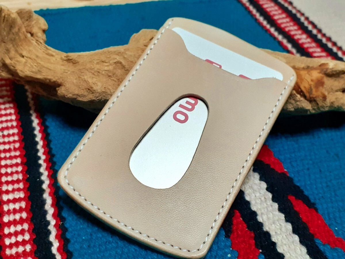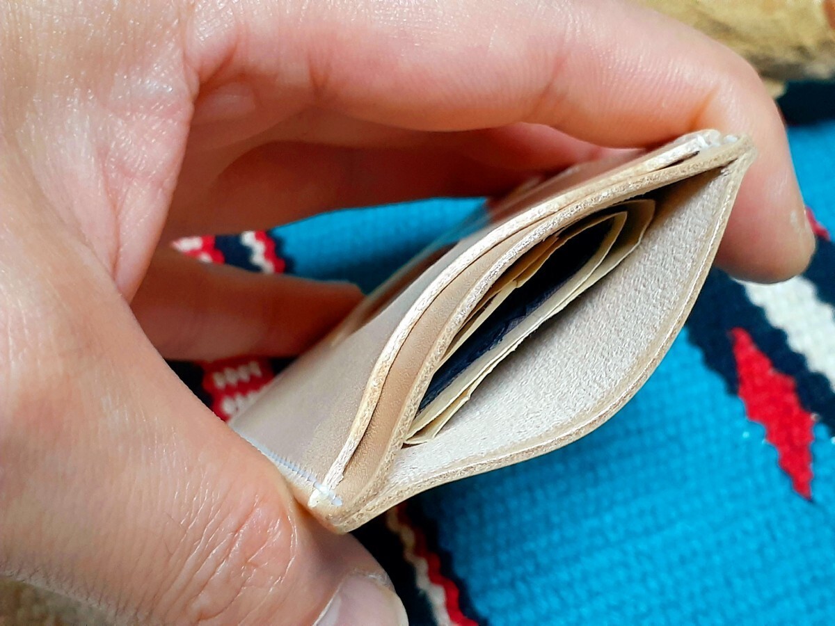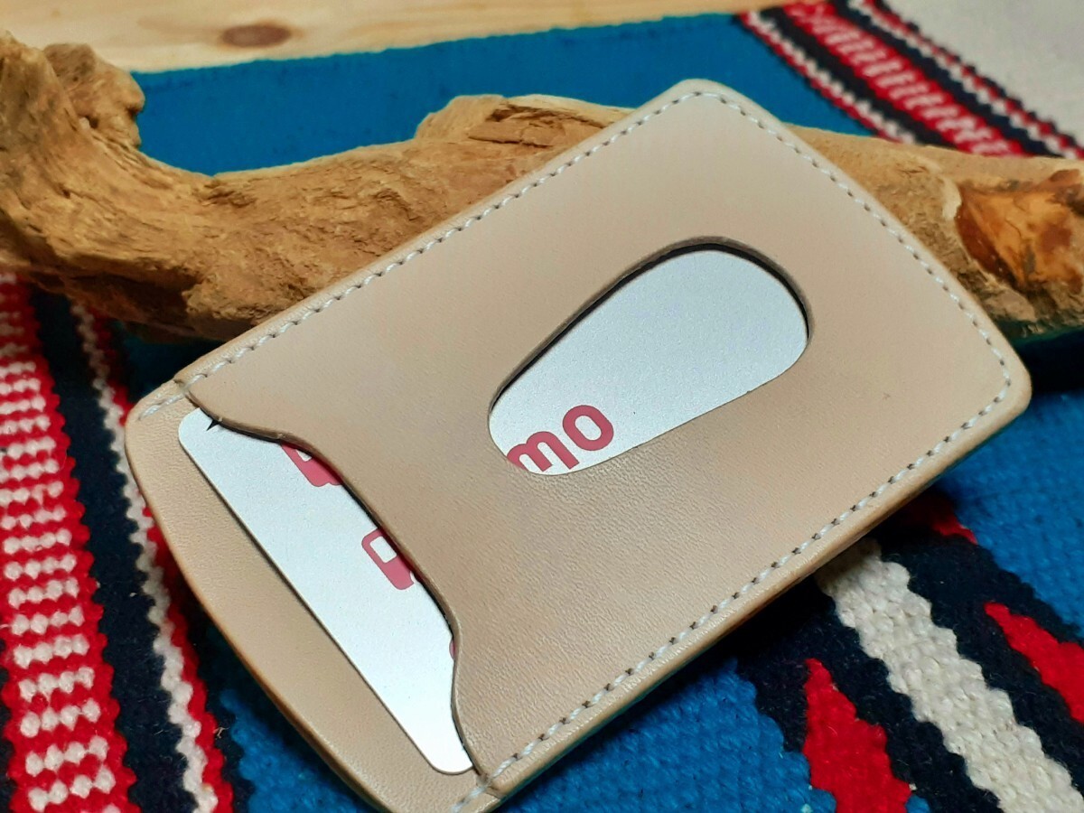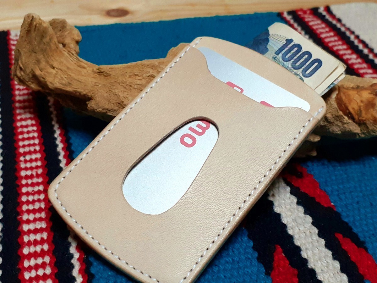 カードスリットに折り札等が入るフリーポケットを併せたミニマムパスケースです。
