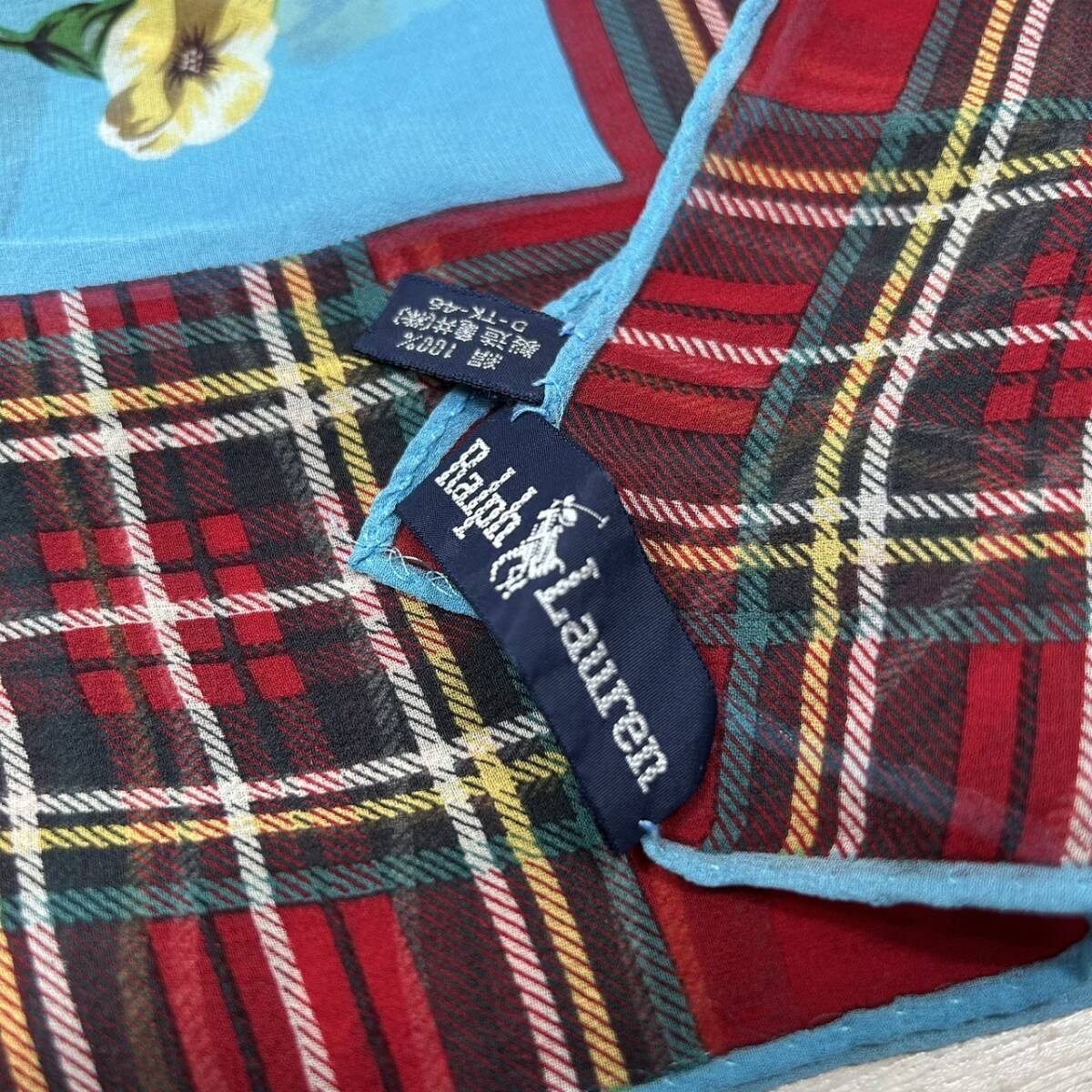 ●【YH-3689】保管品 Ralph Lauren ラルフローレン スカーフ アラベスク 絹100% シルク 製造 亀井(株)