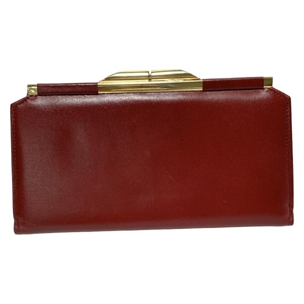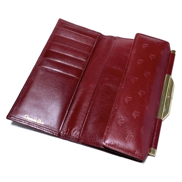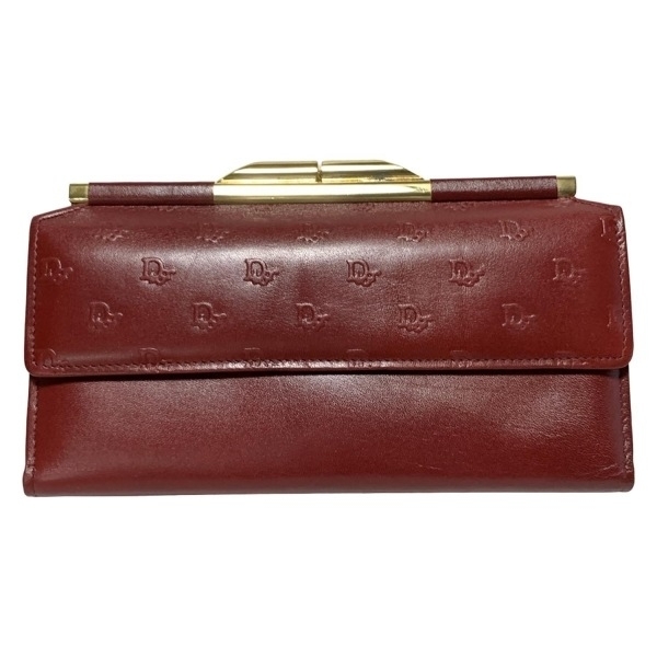 ディオール/クリスチャンディオール DIOR/ChristianDior 長財布 - レザー ボルドー×ゴールド がま口/型押し加工 財布