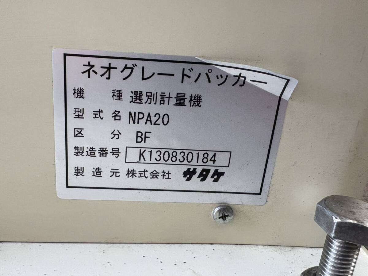【清掃済】【岩国市】サタケ 選別計量機 NPA20 ネオグレードパッカー 網目1.85 計量器 60hz | |||