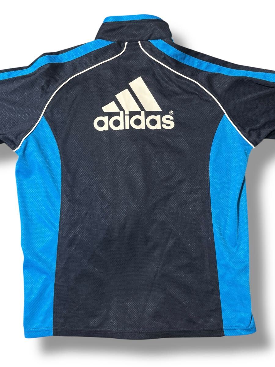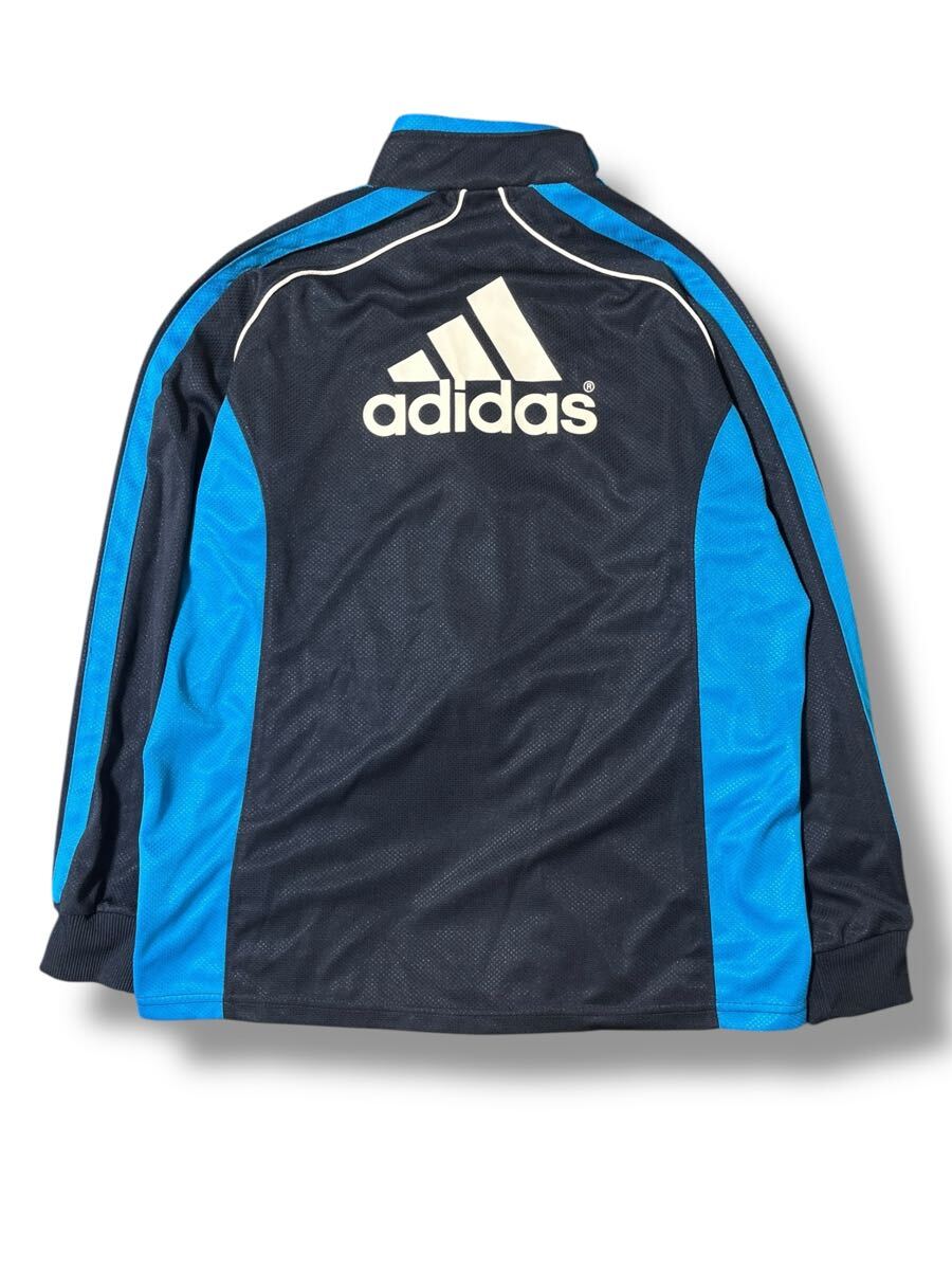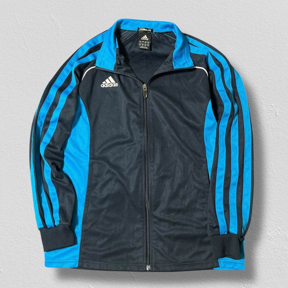 adidas 長袖トラックジャケットブルー×ブラック キッズ160 ●洗濯プレス済● アディダス ジャージ ジャケット ジュニア スポーツ 古着/630