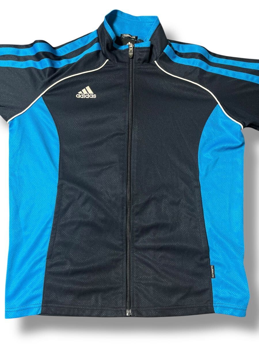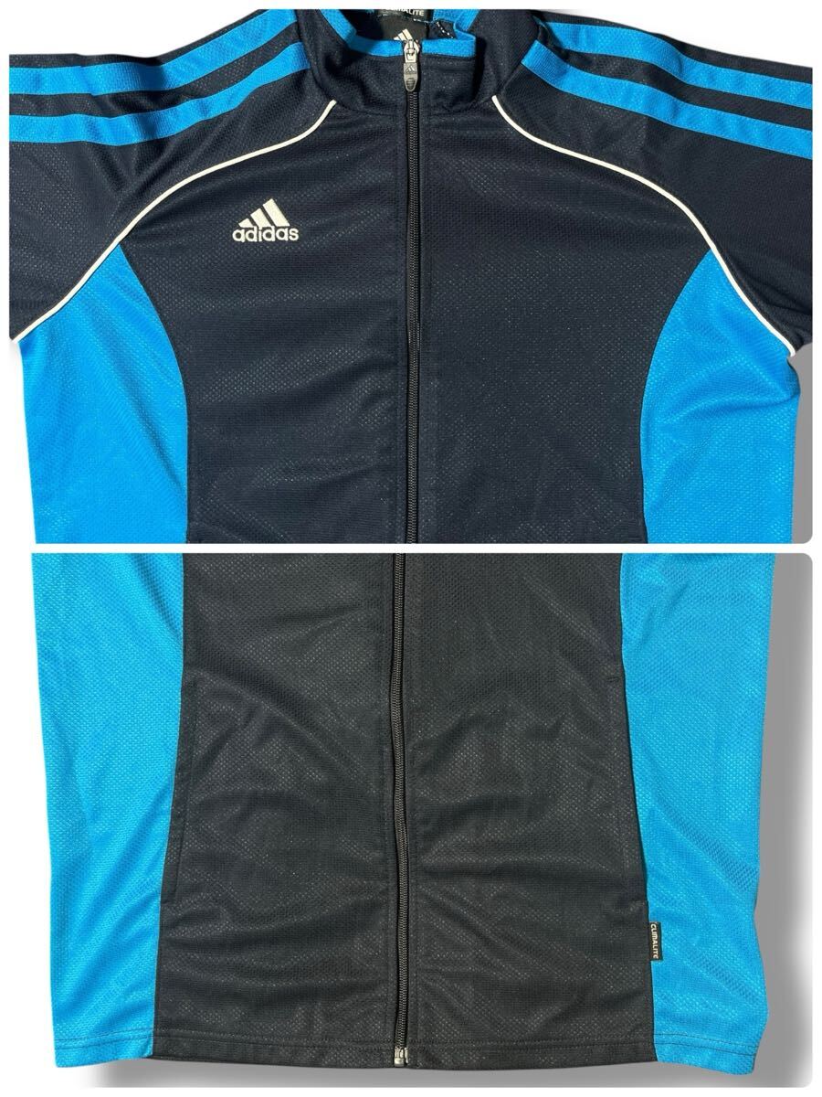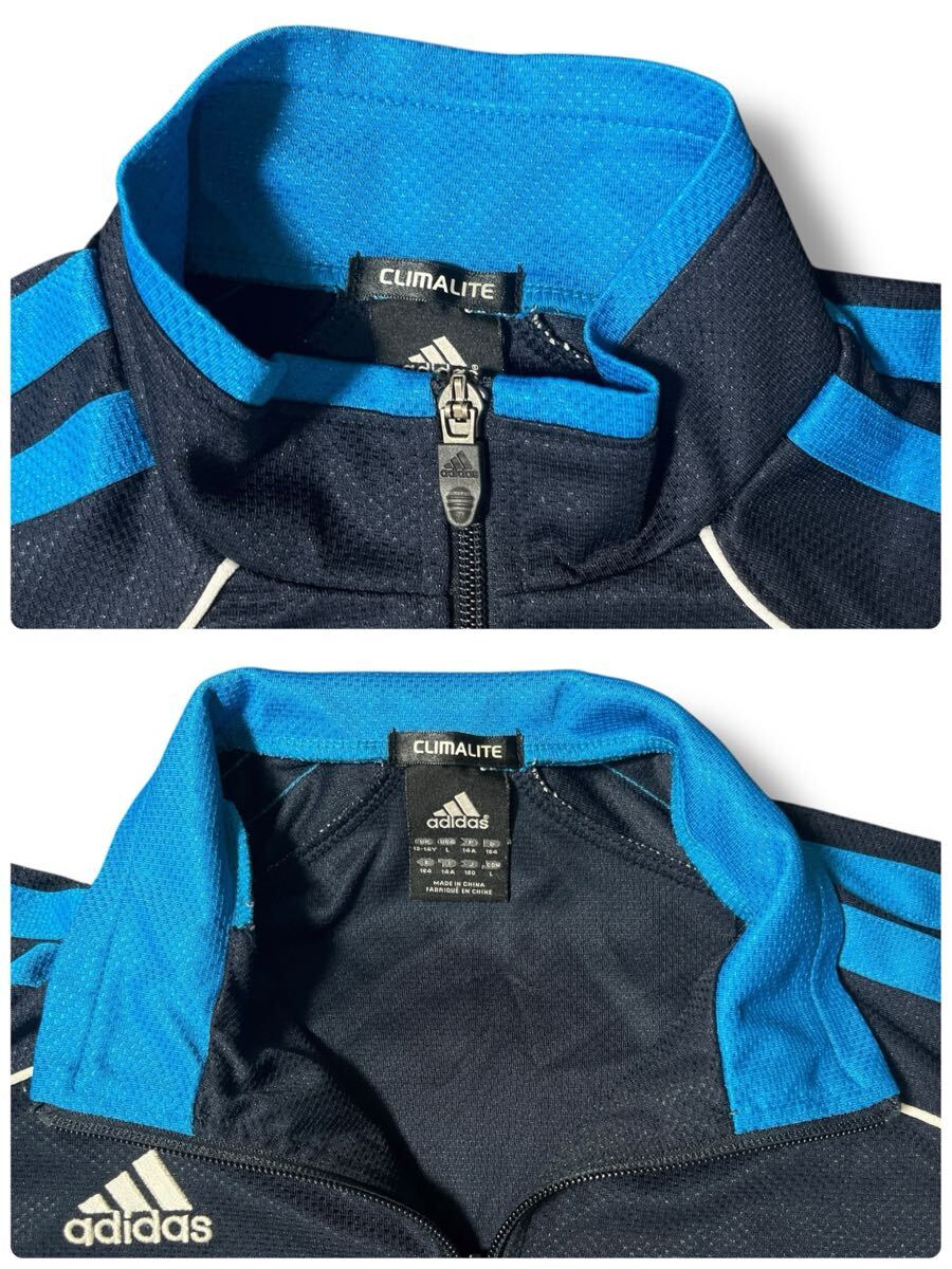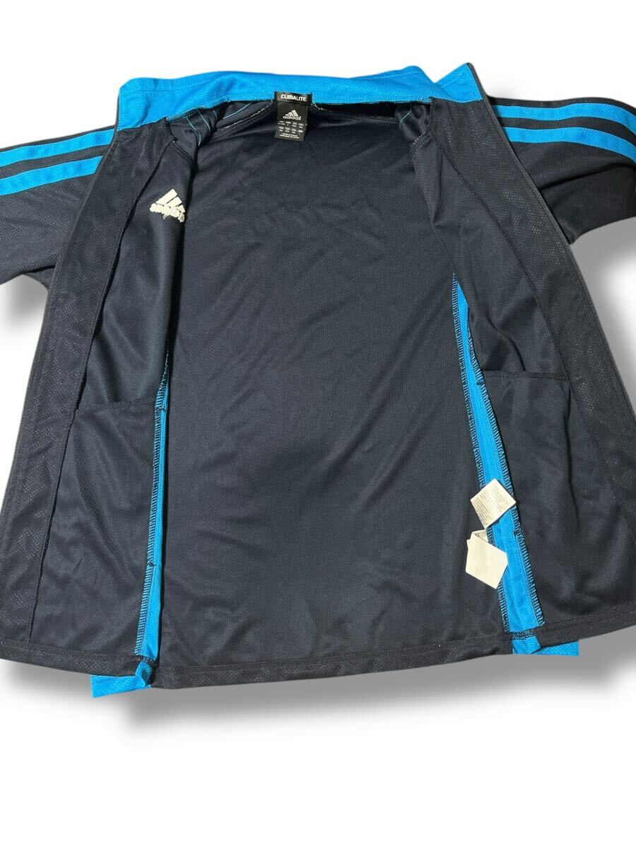 adidas 長袖トラックジャケットブルー×ブラック キッズ160 ●洗濯プレス済● アディダス ジャージ ジャケット ジュニア スポーツ 古着/630