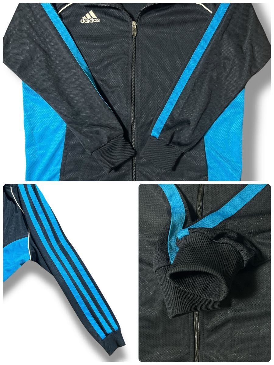 ブラック×ブルーの配色がスポーティなアディダスジャージ。トレーニングにもタウンユースにも◎。