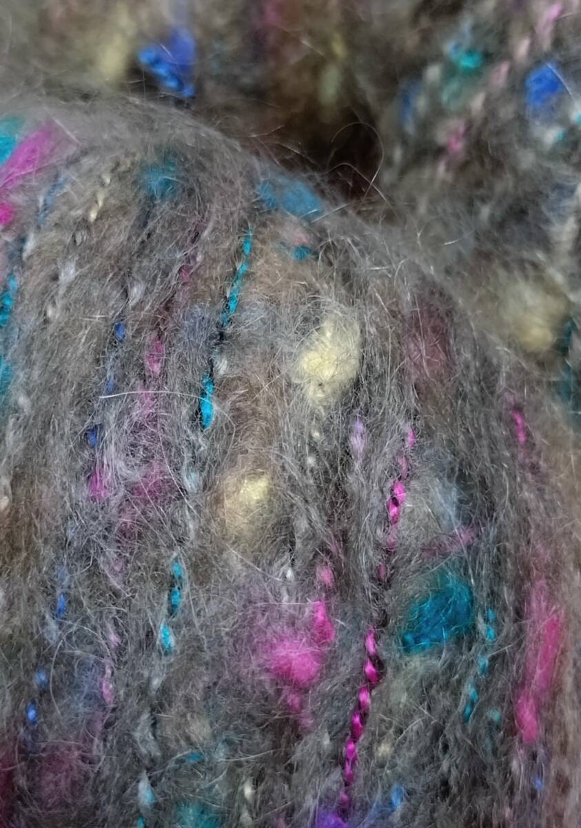 モヘヤの素敵なカラフル毛糸です。1個\1,200前後のお品。