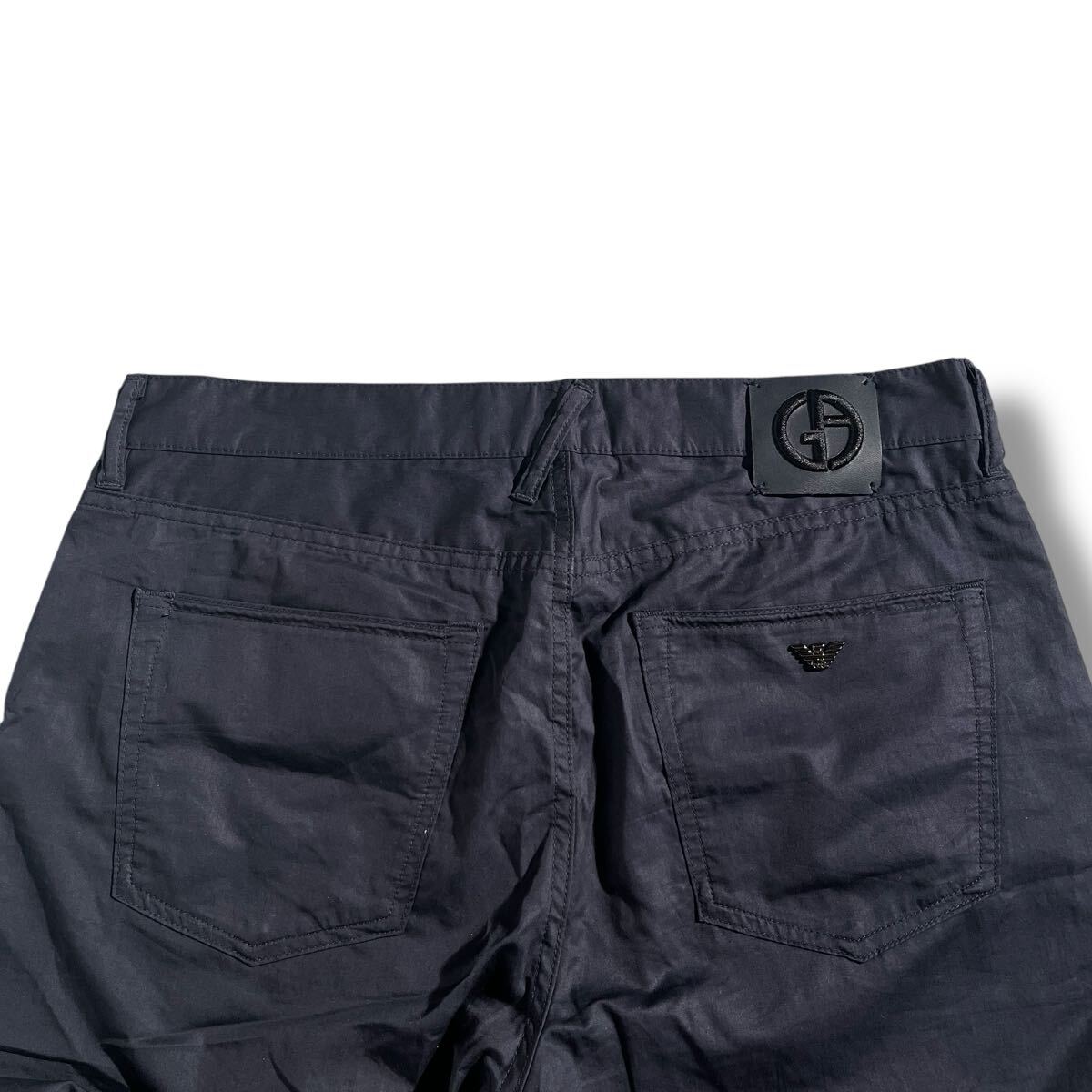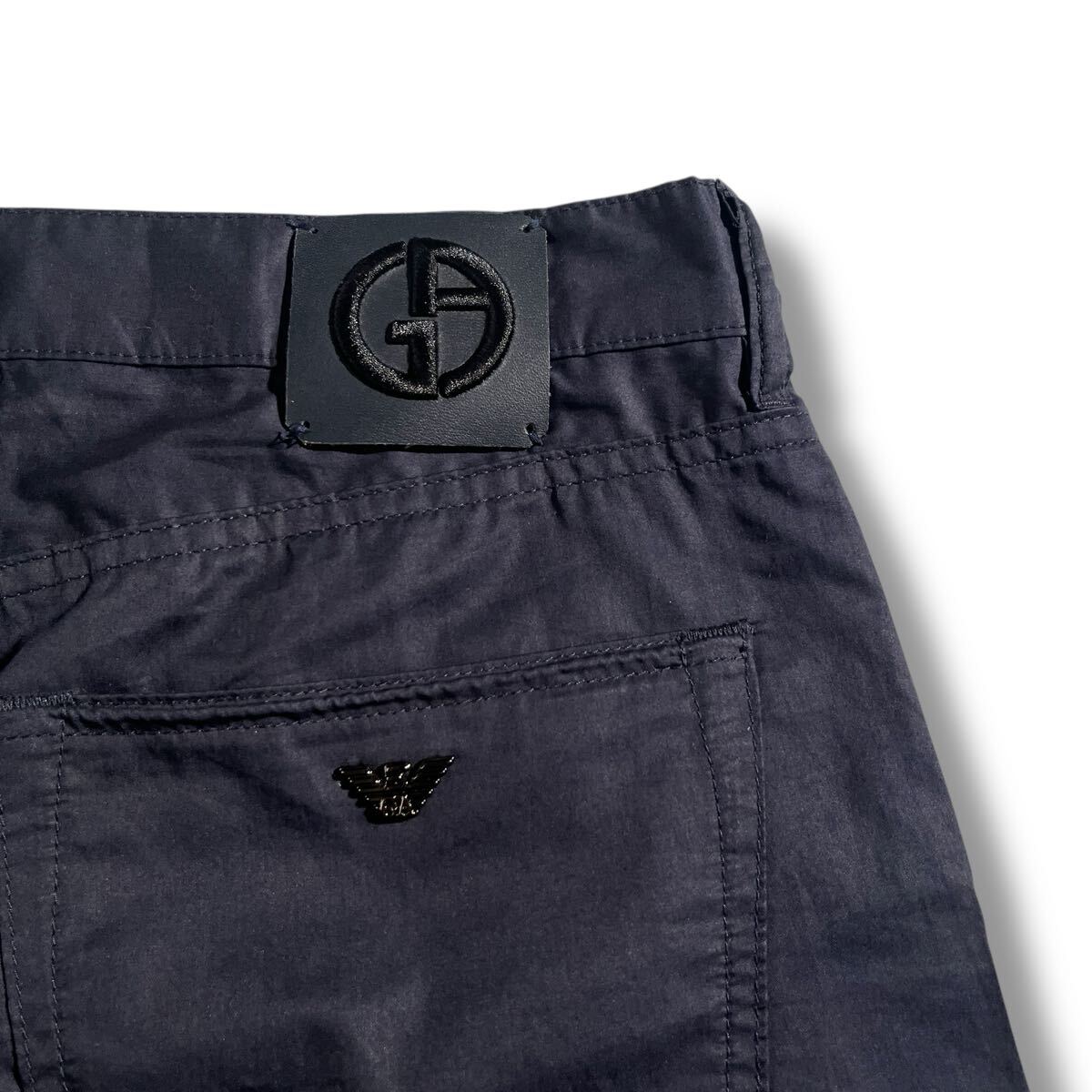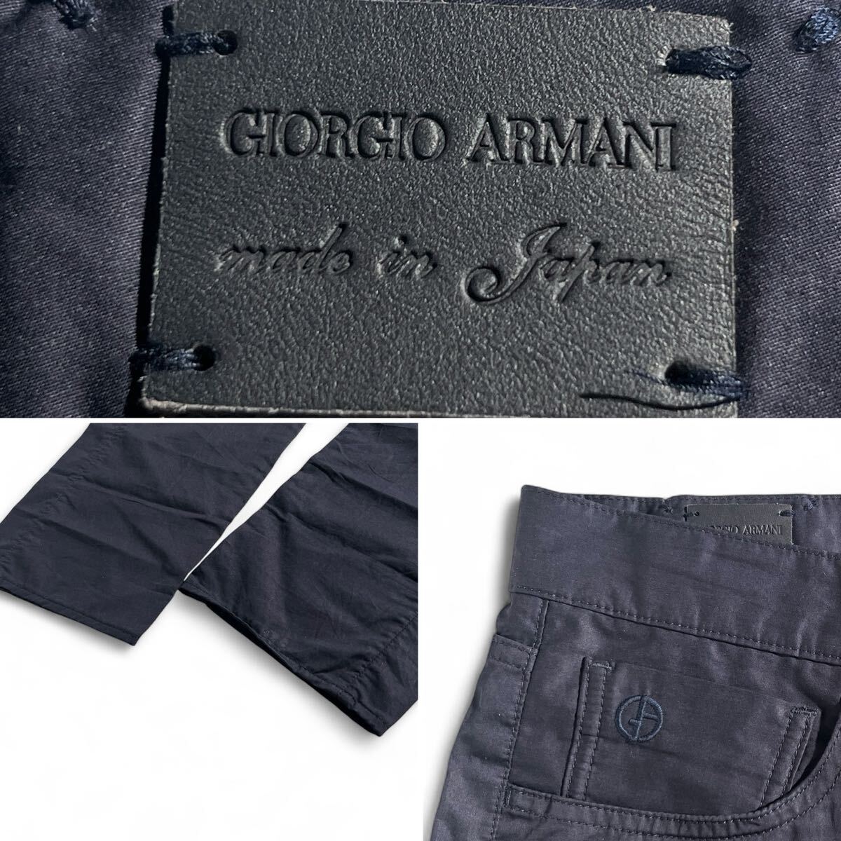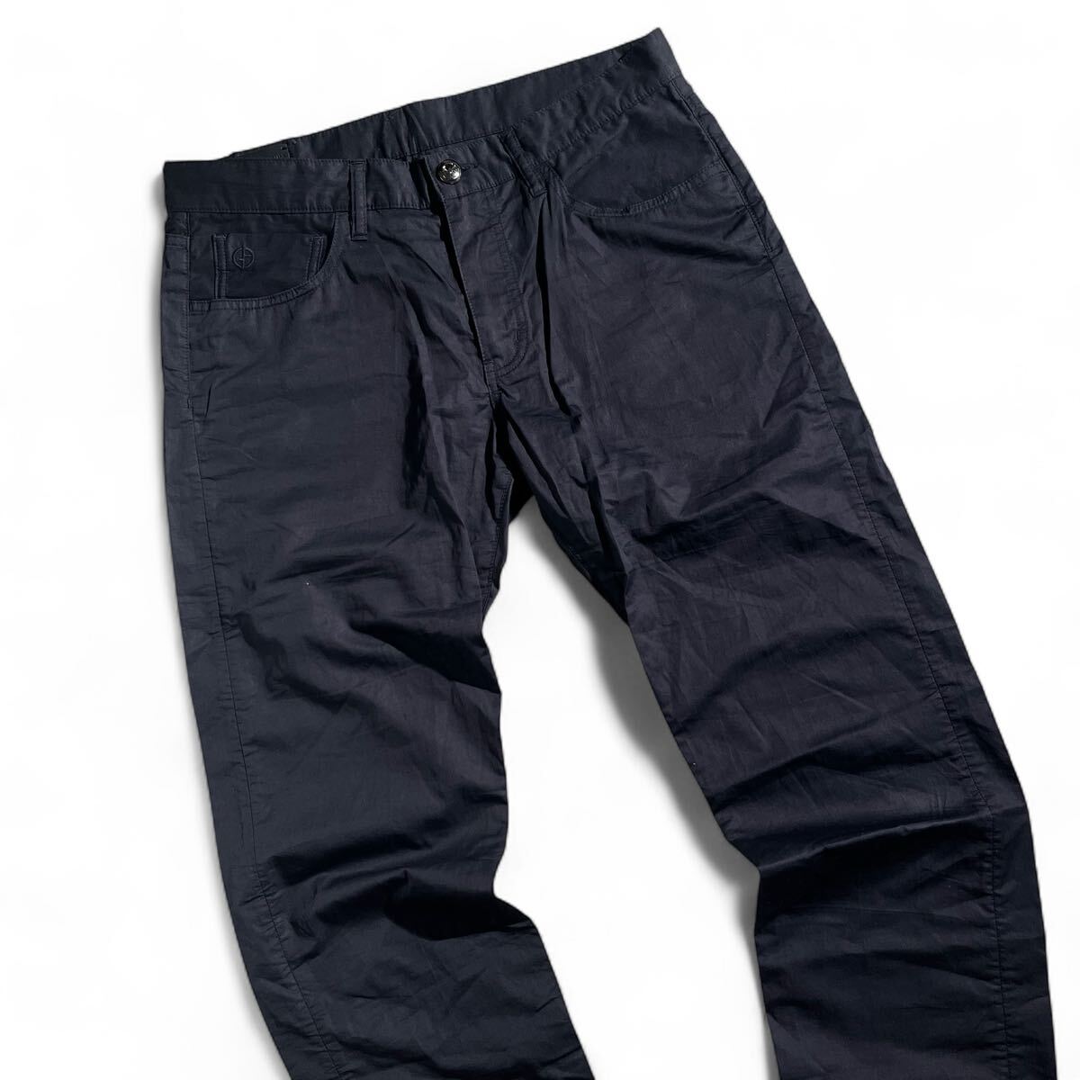 美品/1円 ●GIORGIO ARMANI ●最上級GAパッチ レザー黒タグ ジョルジオアルマーニ コットン テーパードパンツ 32=M~L ダークネイビー