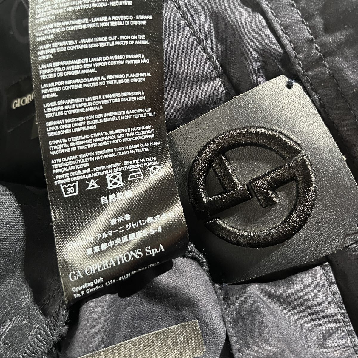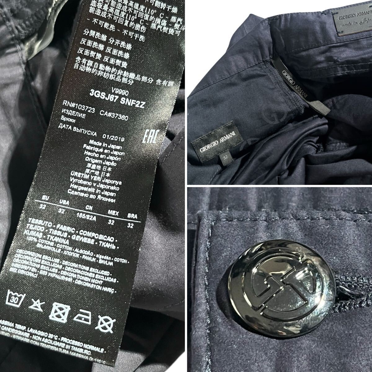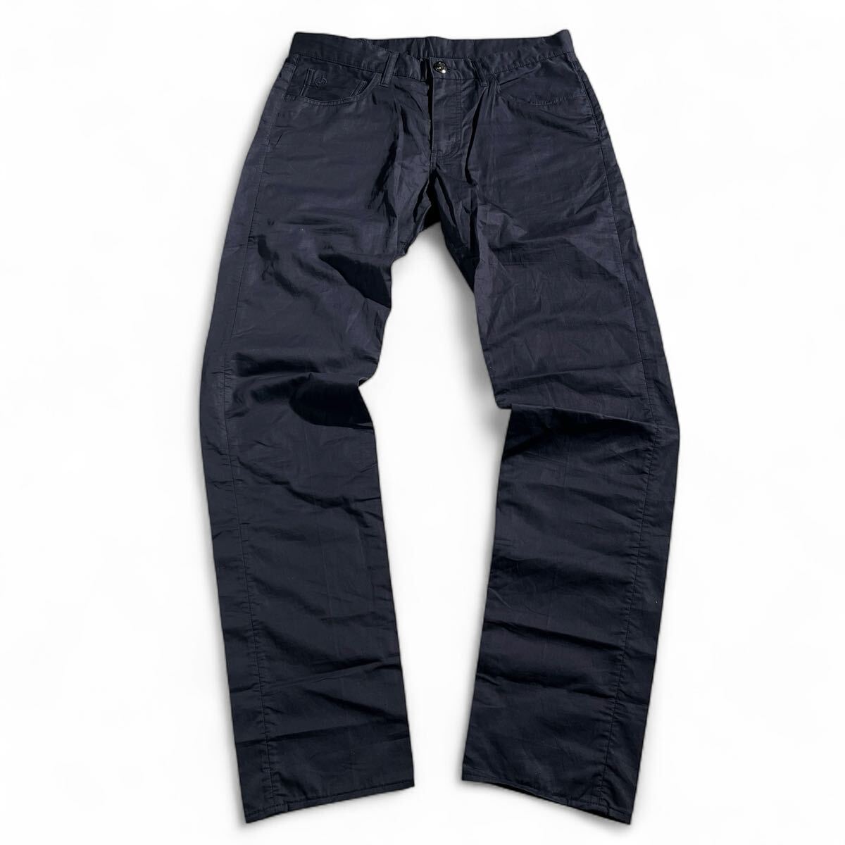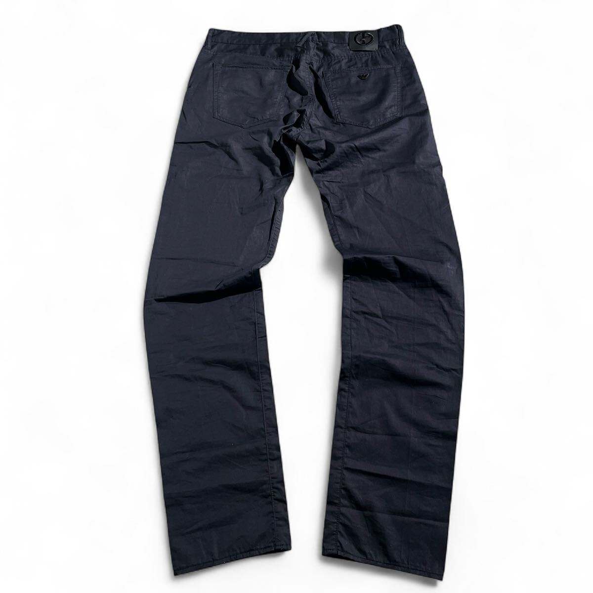 美品/1円 ●GIORGIO ARMANI ●最上級GAパッチ レザー黒タグ ジョルジオアルマーニ コットン テーパードパンツ 32=M~L ダークネイビー