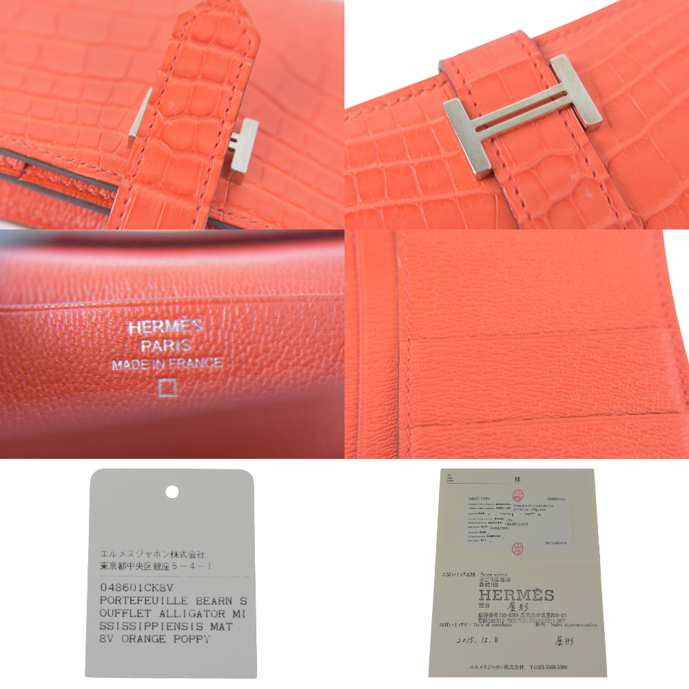 | エルメスの長財布・ベアン スフレです。 こちらの商品は特に目立つ様なダメージの無い綺麗なお品です。 外観は若干のスレ、金具に薄傷がございます。 内観はスレがございます。 ですがまだまだ快適にご使用頂けます。 複数サイトで販売しておりますのでご注文後でも 売り切れとなる場合がございますので予めご了承下さい。 素材 アリゲーター 色 オレンジポピー 刻印 T(2015年) サイズ 9cm×17.5cm 付属品 箱、サイテス、ジャポンタグ 参考上代 *** 商品ランク⇒外観SA~A 内観SA~A (下記ランク表をご参照下さい) N 全くの新品状態 S 新品同様だが多少の小傷あり(未使用品) A 多少の小、中傷はあるがかなり程度の良い商品 B 小、中傷、汚れがかなり見受けられる商品 C 小、中傷、汚れが多く大きな傷も見受けられる商品 D 補修が必要な商品 コメント 商品に関するお問い合わせはお電話でも受け付けております。 0120-15-8412 までお問い合わせください。 店頭にて現物確認をご希望の場合は必ず来店予約をお願い致します。 質問ございましたらお気軽にお願いします。 自己紹介欄をお読みください。 ★★★注意★★★ ■ご購入後にいろいろご質問される方がおられますが、疑問点などございましたら納得がいくまで必ずご購入前にご質問ください。 ■購入は責任を持って行ってください! ■新規の方も歓迎いたしますが、 キャンセル歴が多い方、評価が著しく悪い方などは 当方の判断で削除させて頂く場合もございますのでご理解下さい。 ■必ず落札後24時間以内にご連絡頂ける方、ご連絡後、金融機関2営業日以内にご入金いただける方のみご入札お願いします。 ■商品ランク表は保証するものではございません。 参考程度にお考え下さい。 ■ご使用ののモニター環境により、商品の素材感や色合い等が、 実際の商品の色調と異なる場合がございます。 ご了承の上ご入札をお願いします。 ■当方の出品物はすべて実際の商品の画像を使用しております。 ■新品、未使用品でも自然なムラ、シワや、保管等によるわずかなキズ、汚れ等が有る場合がございます。必要以上に神経質になられる方は、入札前に今一度ご検討ください。 ■中古品につきましては中古品にご理解いただける方のみご入札下さい。極端に神経質な方はご遠慮下さい。 ■バック等に関しては型崩れを防ぐため 中に詰め物をして撮影しております。 ■クォーツ時計に関しましては発送前の検品時に電池切れが確認された場合は当社負担にて電池交換後の発送とさせて頂きます。 (発送までお時間を頂く場合がございます。) ■時計の保証期間は1ケ月間の自然故障のみでございます。 ■海外発送をご希望の場合は質問欄よりお問い合わせ下さい。 ★★商品の返品について★★ ■サイズ違い、イメージ違い等お客様のご都合による返品は いかなる場合も受付しておりませんのでご了承ください。 ■万一商品が偽物であった場合は責任を持って 100%返金対応させて頂きます。 ■原則返品不可 古物商許可証 兵庫県公安委員会 第631611500038号 (株)北詰商事 | |||