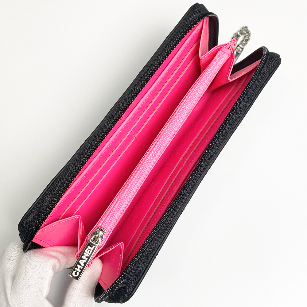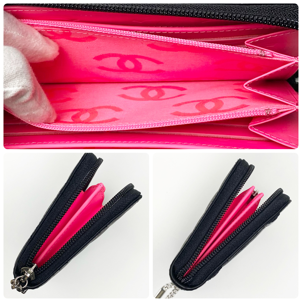 【最高峰品】未使用!シャネル CHANEL マトラッセ カンボンライン ココマーク ラウンドファスナー ブラック×ピンク A50078 送料無料