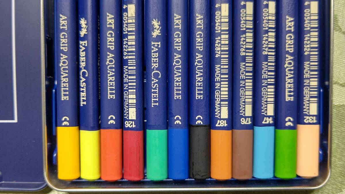 921-1 ドイツ製 FABER-CASTELL ファーバーカステル 11 42 12 ART GRIP AQUARELLE 水彩色鉛筆 アートグリップ 12色 缶ケース入り 数本少使用