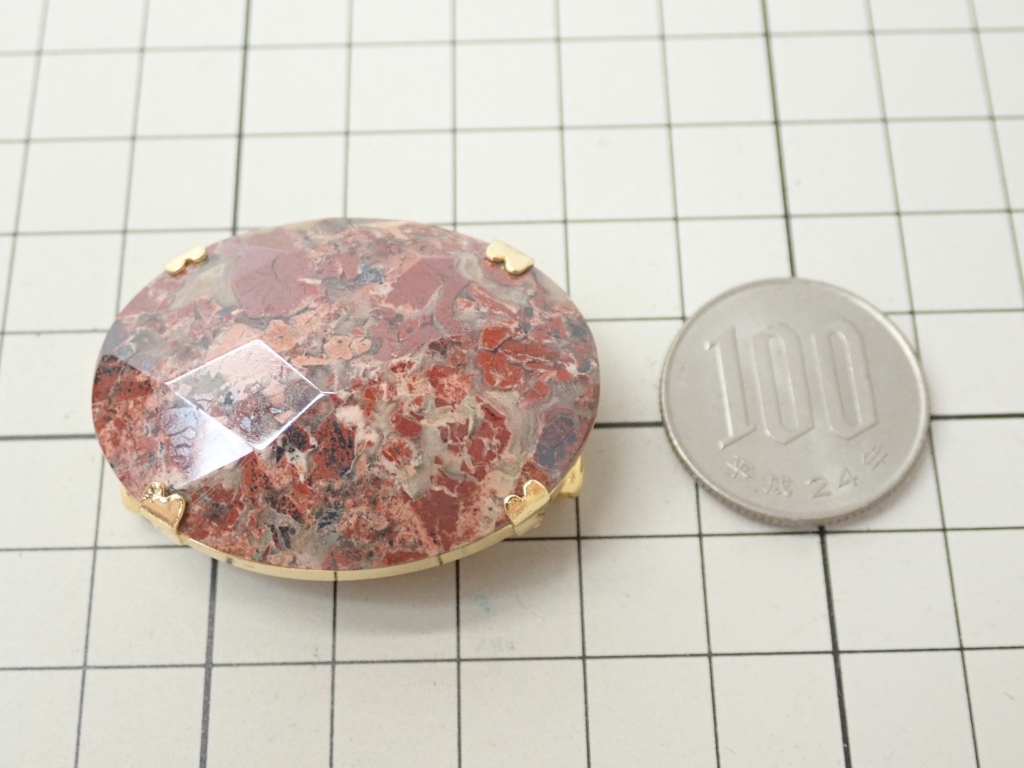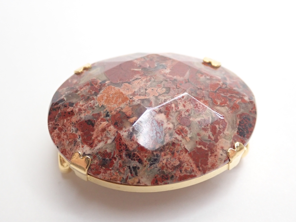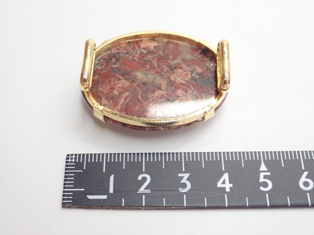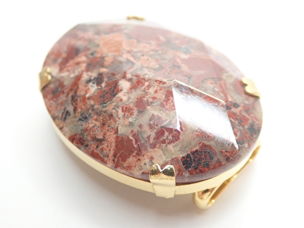 B464 帯留め 天然石 赤茶石 カットデザイン 楕円型 和装小物/着物 Japanese Kimono Jewelry