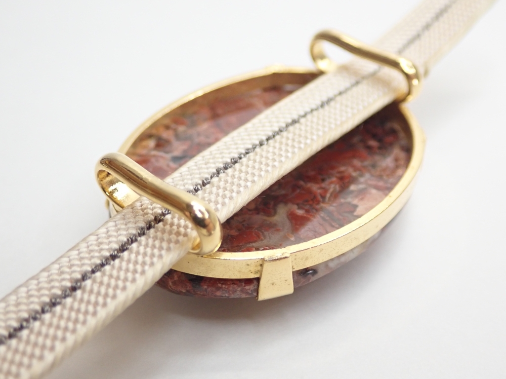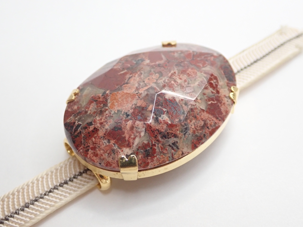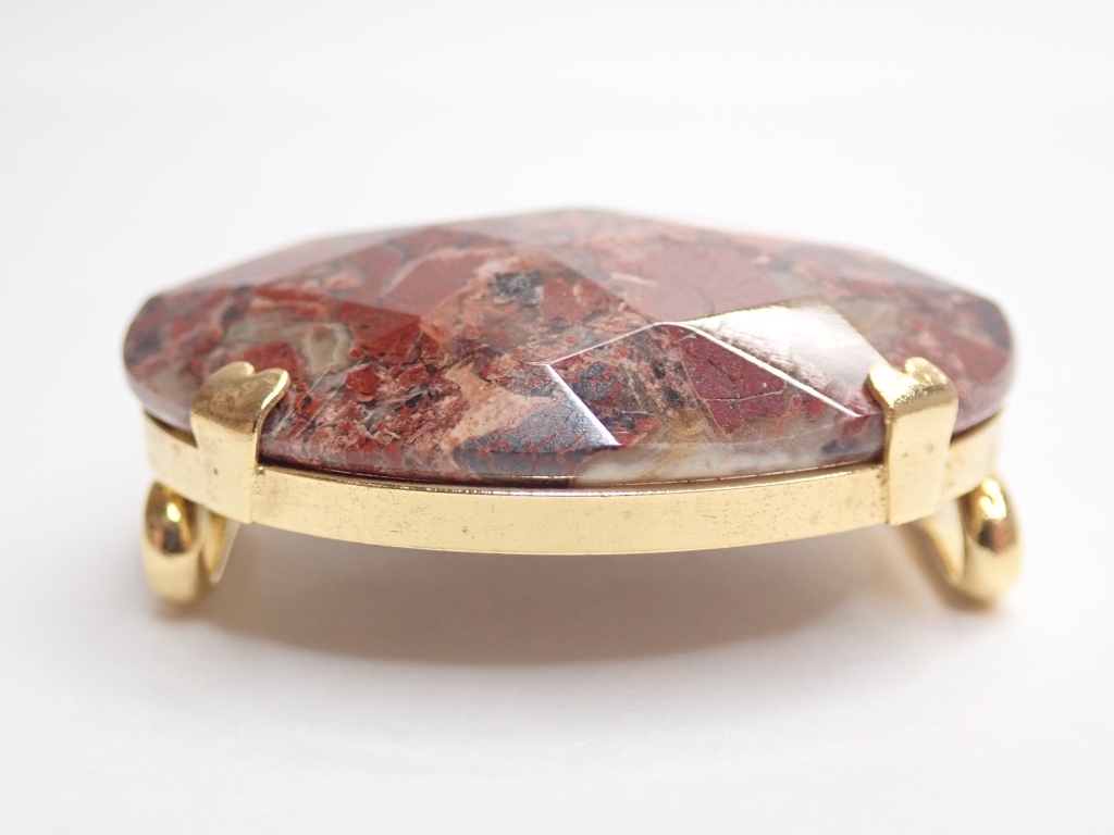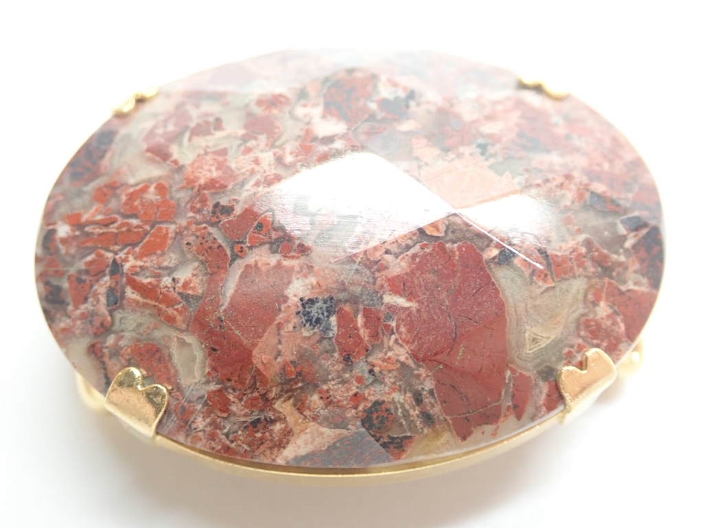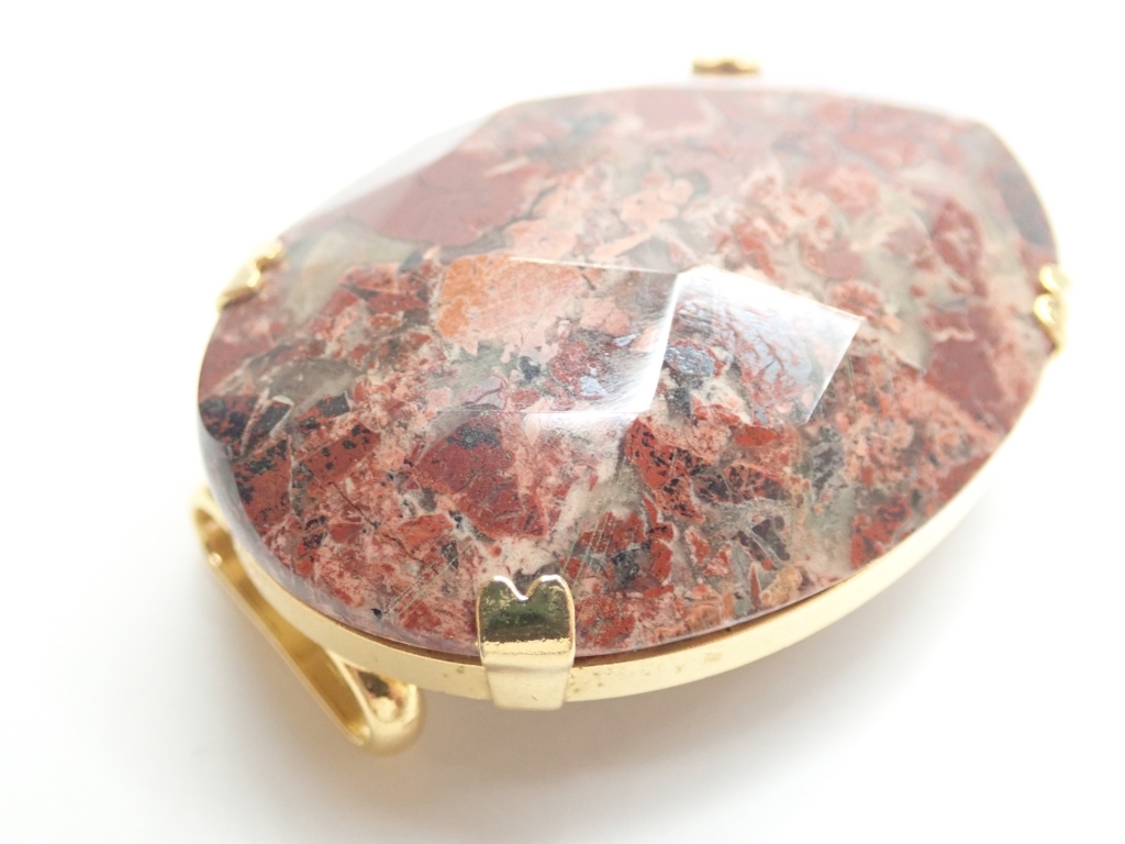 B464 帯留め 天然石 赤茶石 カットデザイン 楕円型 和装小物/着物 Japanese Kimono Jewelry