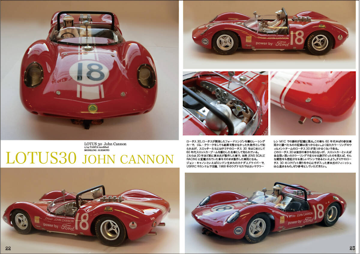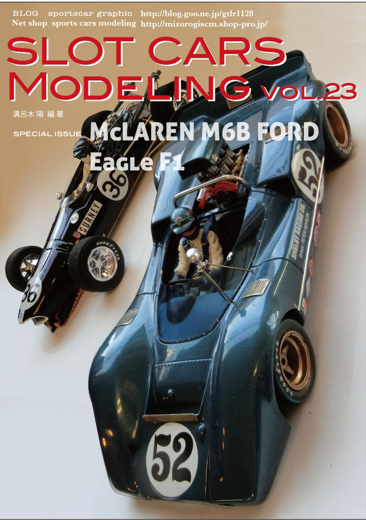 個人模型雑誌スロットカーズモデリング 特集シェルビーマクラーレン イーグルF1 巻頭はレブソンのマクラーレンとガーニーのイーグル。そしてヒルとリントの49B/Cが続きます。フランコルシャンのフェラーリ512S、日本グランプリの2000GTや滝ローラなど。繊細な作りを大判写真でご紹介します。オールカラー32ページ。