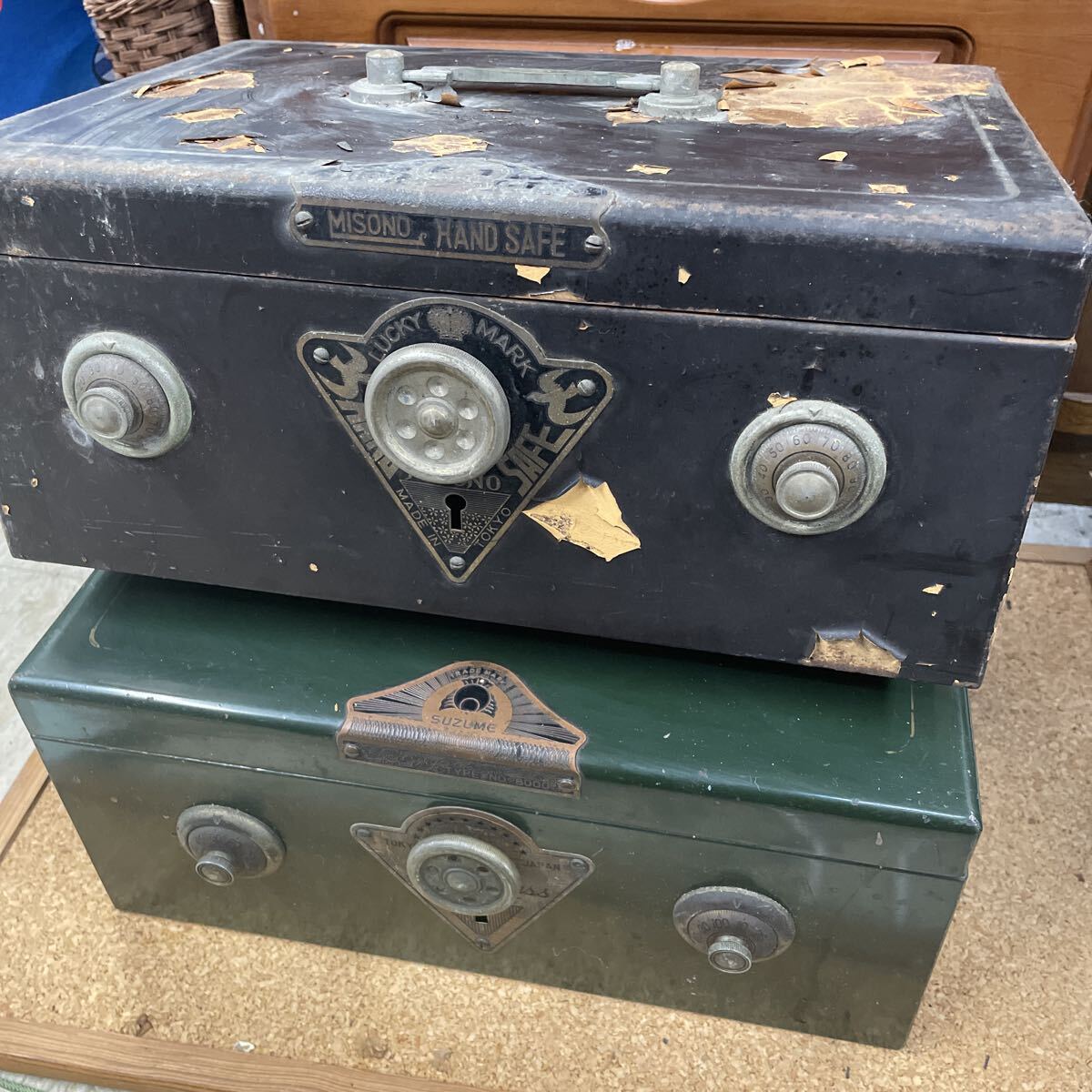 ジャンク 2個セット 鍵無し キャッシュボックス 昭和レトロ 手提げ金庫 アンティーク レトロ CASH 当時物 BOX ダイヤル式