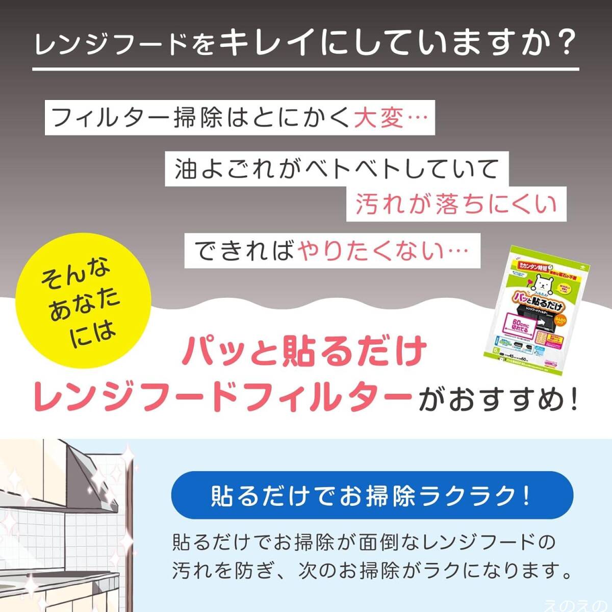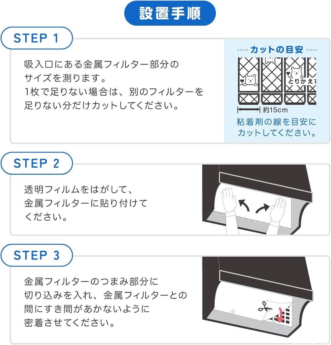 取り付け簡単。ふんわりフィルターが油汚れをしっかりキャッチ。