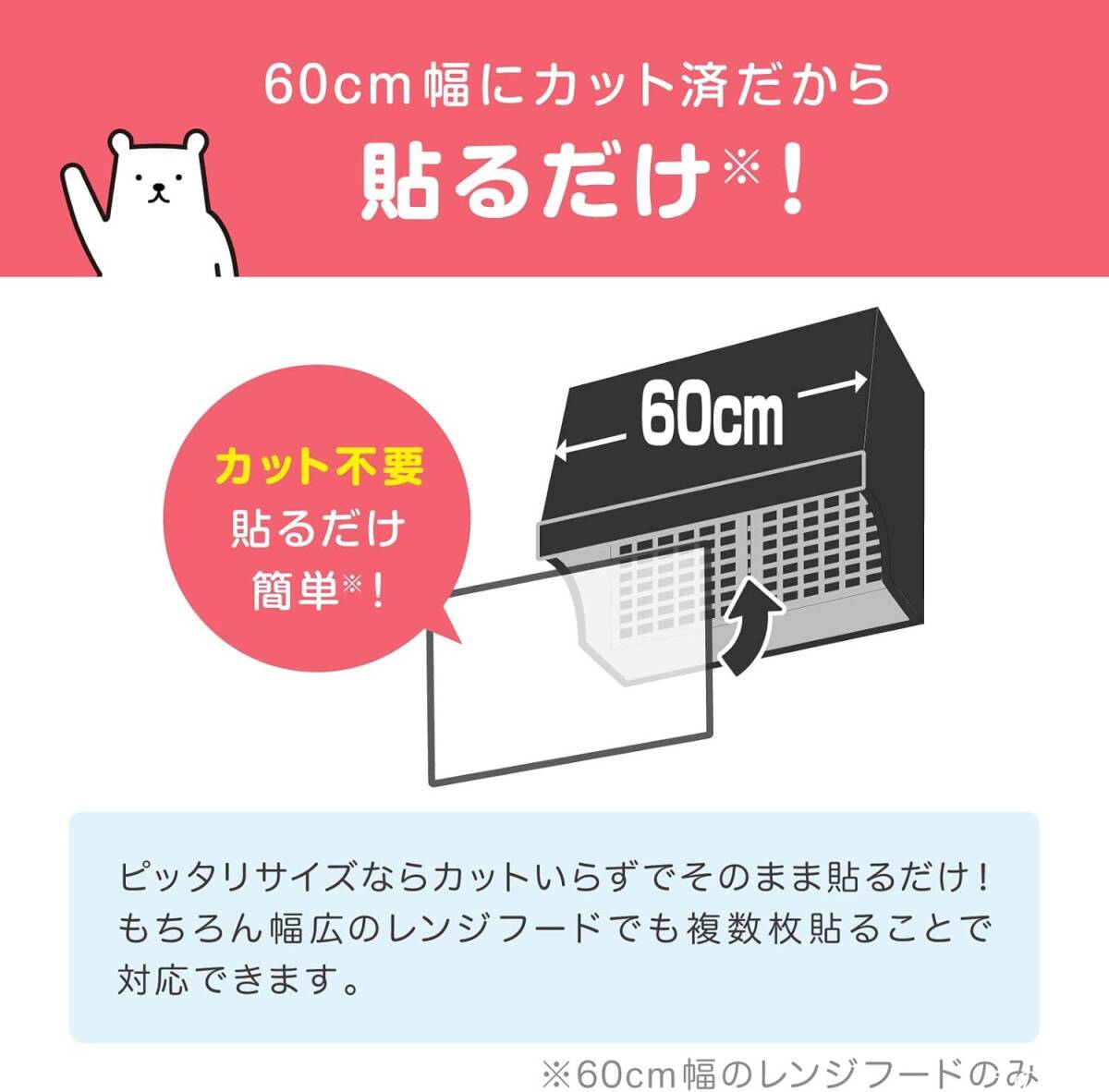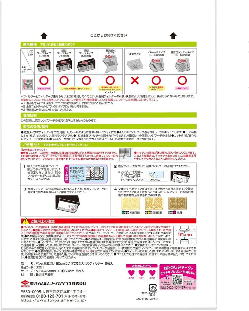 東洋アルミエコープロダクツ 東洋アルミ パッと貼るだけレンジフードフィルター 約45cm×60cm 磁石要らずでカンタン 60cm