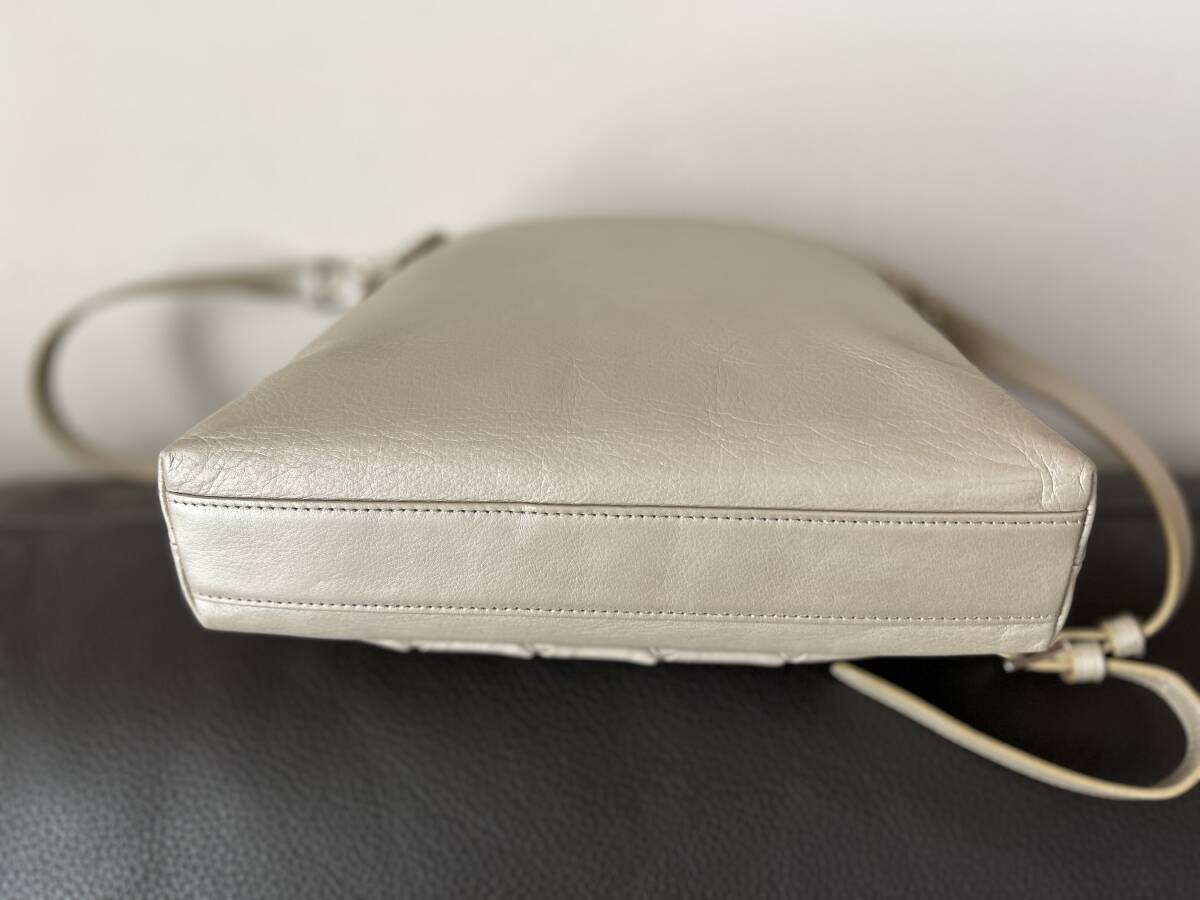 目立った傷、汚れもなく綺麗です。サイズは横幅最大26㎝、高さ27㎝、奥行き6㎝、ショルダーの長さ108㎝で、4段階に調節可能。(素人採寸の為多少の誤差はお許しください。中に詰め物をして計測。)内側にオープンポケット2個、ファスナーポケット1個、外側にファスナーポケット2個有り。同梱可能(3日以内)他にも出品していますので、ご覧ください
