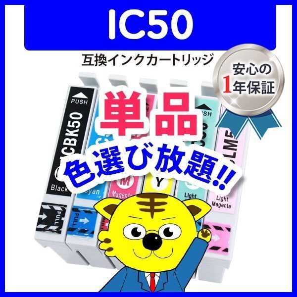 エプソン用 IC50系 互換インクカートリッジ 単品・色選択自由!! ★各色同一価格★ エプソン用 ICBK50(ブラック) エプソン用 ICC50(シアン) エプソン用 ICM50(マゼンタ) エプソン用 ICY50(イエロー) エプソン用 ICLC50(ライトシアン) エプソン用 ICLM50(ライトマゼンタ) ※出品価格はインク1個の価格です(別途、送料(¥300)が必要です) 色の選択・数量等は、下記テンプレートをご使用いただきストアへのご要望欄よりご連絡をお願いいたします 【 送料無料セット商品はこちら 】 【 インクジェット用光沢写真用紙こちら 】 |