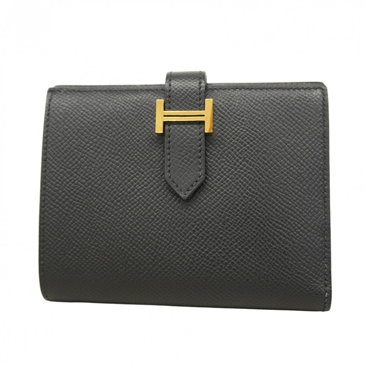 【5ic3808-h】エルメス 財布 ベアンコンパクト ヴォーエプソン ブラック ゴールド金具 K刻印【中古】メンズ レディース ユニセックス