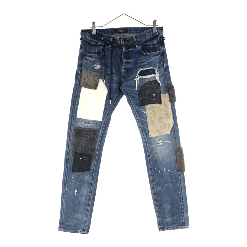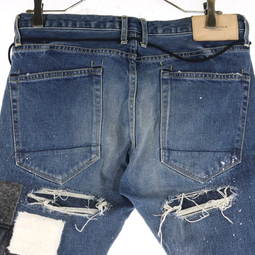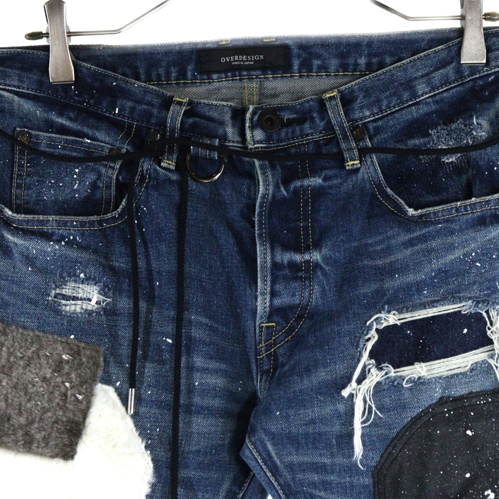 OVERDESIGN オーバーデザイン 異素材パッチワークデザイン ダメージ加工 ボタンフライ デニム スキニーパンツ インディゴ