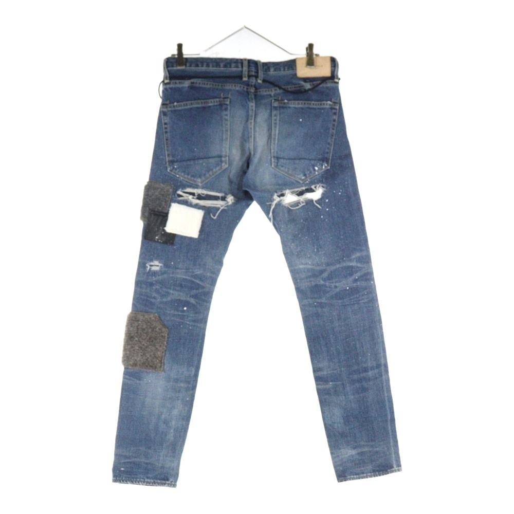 品名異素材パッチワークデザイン ダメージ加工 ボタンフライ デニム スキニーパンツ インディゴ