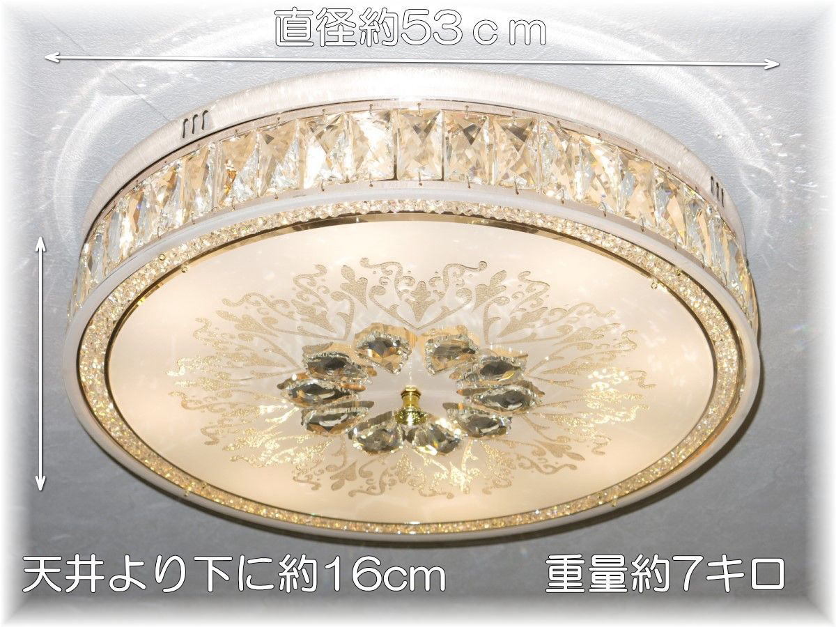 商品説明 | ![]() 【送料無料!】新品・綺麗なデザインガラスLEDクリスタルシャンデリア ●LEDダウンライトを12灯(¥18000-相当)お付けいたしまして驚きのプライス! ●消費電力わずか60ワットで600ワットの明るさ! ●リモコン操作でさらに省エネ! リモコンも付属しており12灯全灯~8灯~4灯~消灯の切り替えが可能です 新品・綺麗なデザインガラスLEDクリスタルシャンデリア クリスタルガラスと綺麗なデザインガラスを融合させた豪華なシャンデリアです 12灯のLEDダウンライトがデザインガラスを通し光の屈折で光の持つ本来のカラーをかもし出しダイヤモンドのように輝きながらお部屋全体を照らします スタイルは飽きの来ないシンプルなデザインです リモコンも付属しており 12灯全灯~8灯~4灯~消灯の切り替えが可能です シャンデリア本体は調光にも対応しております ※調光ご希望の場合、調光対応LED1個¥200-アップと汎用調光器(パナソニック製推奨)が必要でリモコンとの併用は不可です リビング・店舗等に最適なゴージャスデザインガラスLEDクリスタルシャンデリアを是非この機会に! 付属電球・・・LEDダウンライト暖色12個(明るさ50ワット消費電力5ワット¥18000-相当) 白色LEDご希望の場合ご注文後お申し付けください 出品画像は暖色LEDを装着し撮影しております 電球の交換は簡易に取り外し可能です サイズ・直径約53cm 天井より下に約16cm 重量約7キロです ![]() |