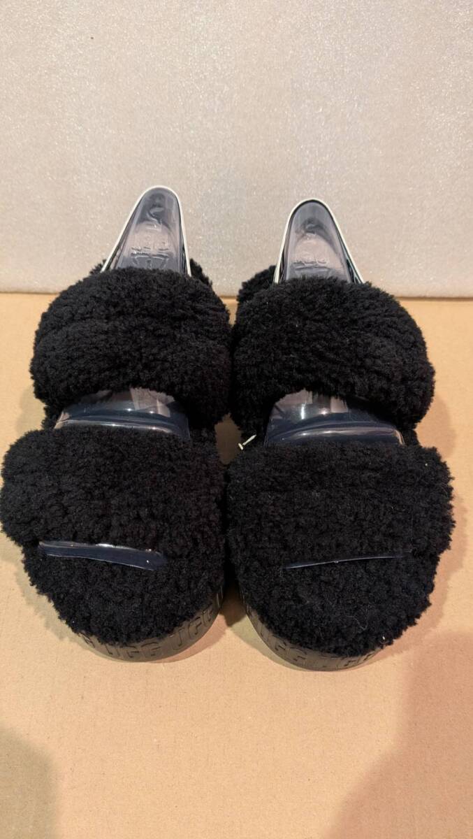 ● UGG ● アグ ストラップ ボア サンダル フラッフィータ 22.0㎝ ブラック 黒 ロゴ