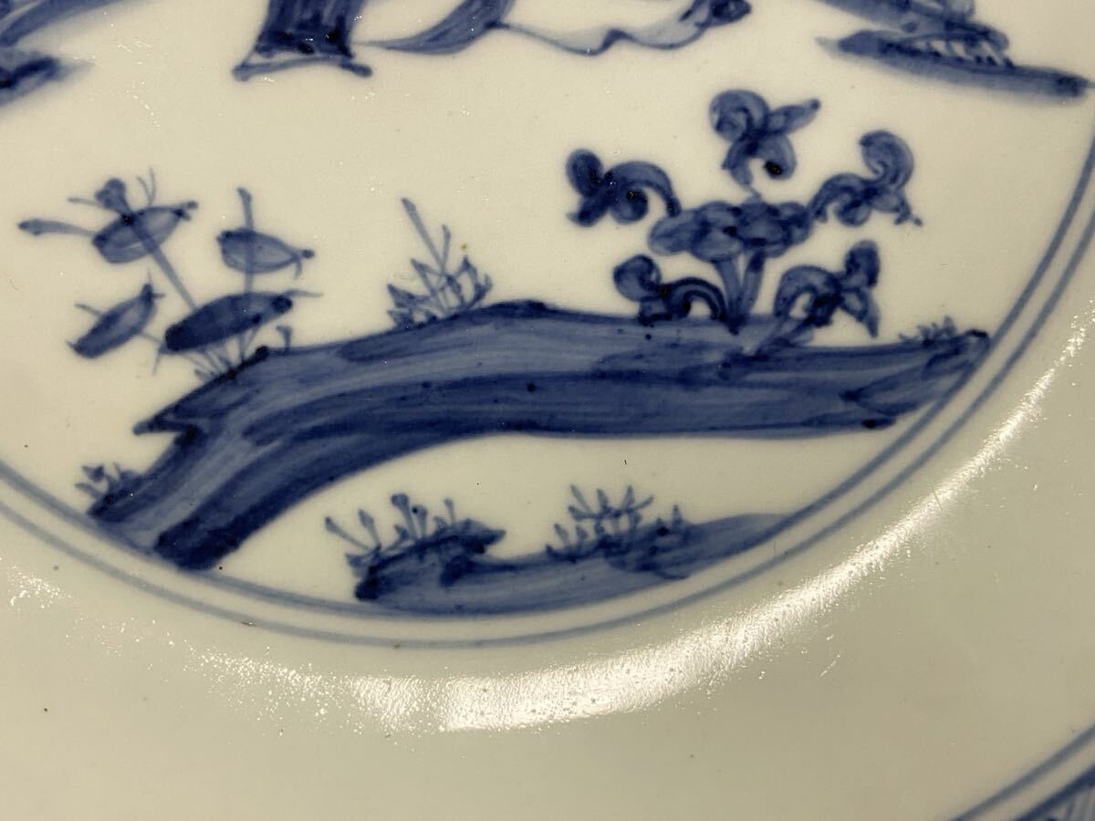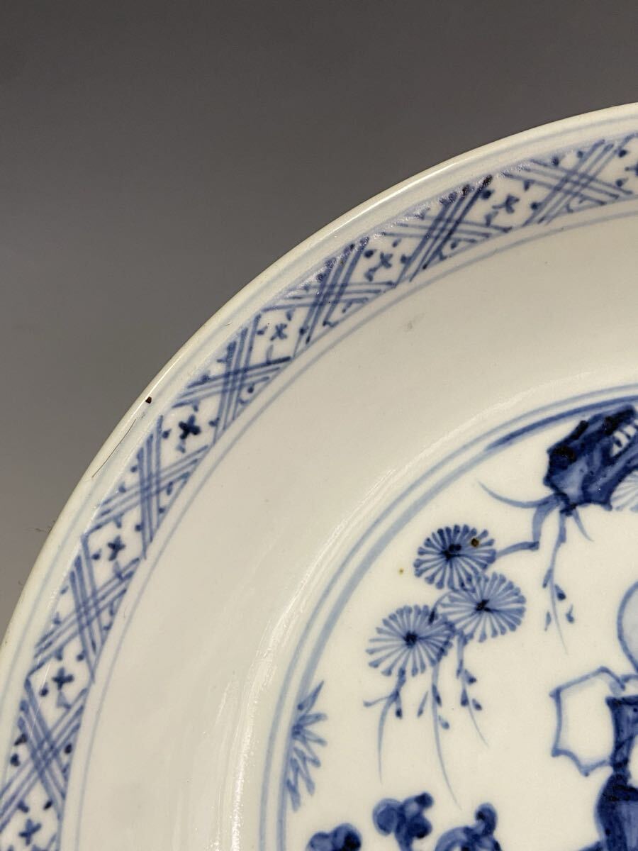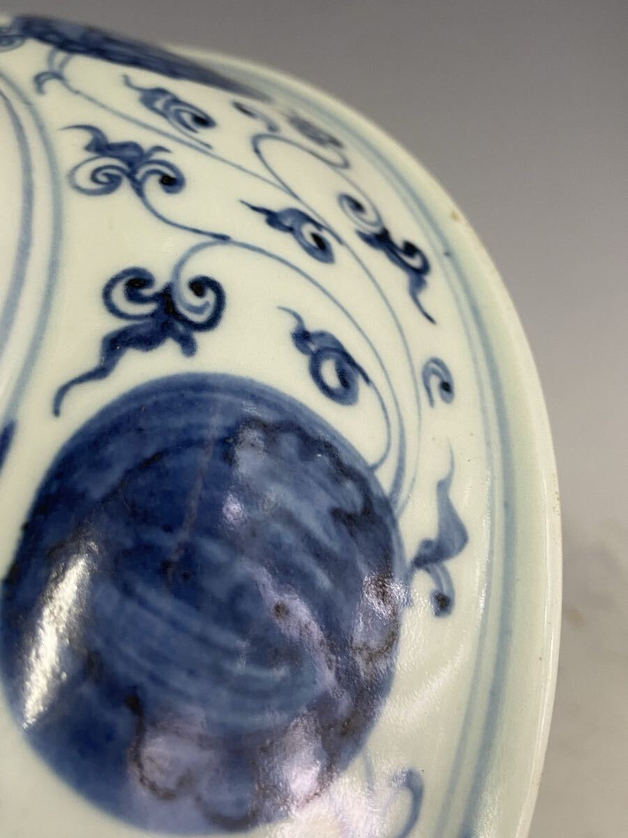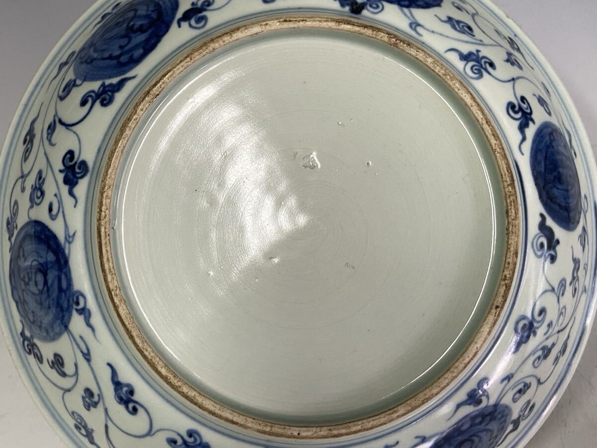 【雅園】中国古美術 明時代 官窯 青花 皿 古玩 骨董 時代物 古美術 唐物 当時物 置物 飾皿 時代物 置物 直径 22cm yt18