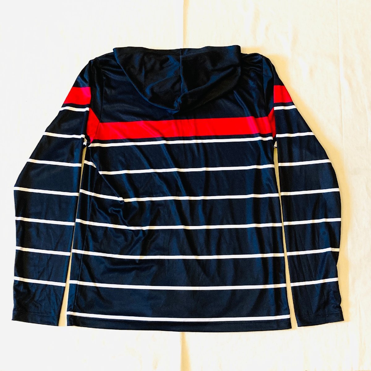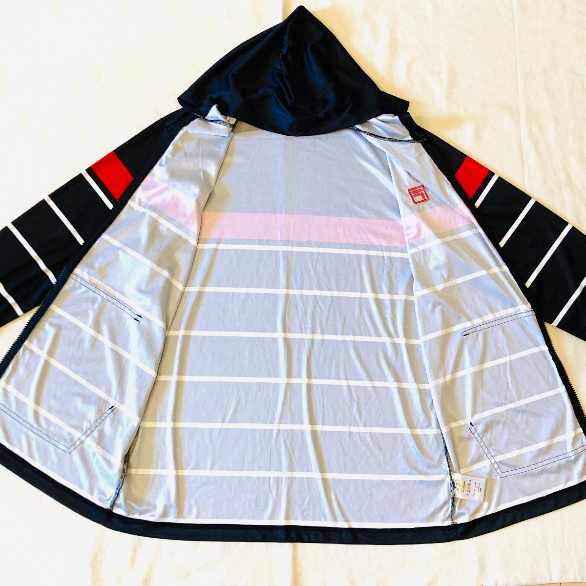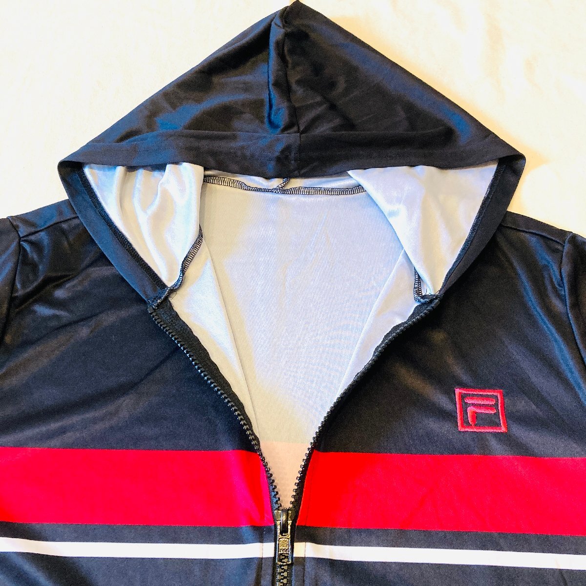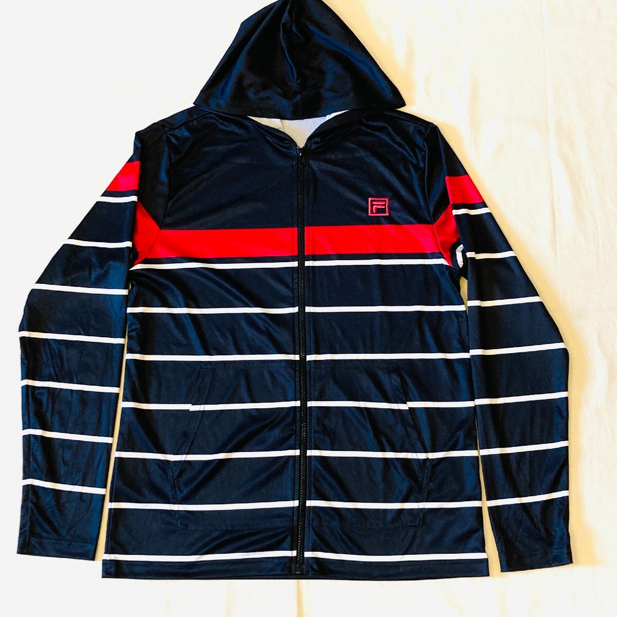 FILA フィラ ジップアップ パーカー フーディー ボーダー柄 ブラック/レッド/ホワイト LL