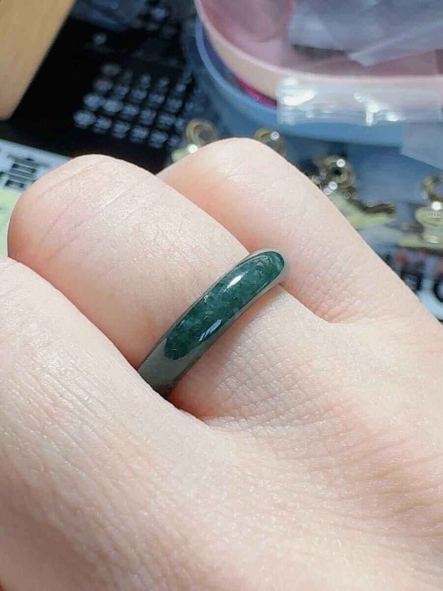 R2-02099-1天然本翡翠《本物保証》 藍水翡翠 指輪約12号 一点物 希少 縁起物 お守り 魔除け 昇進 成功 風水 金運 財運 幸運 幸福