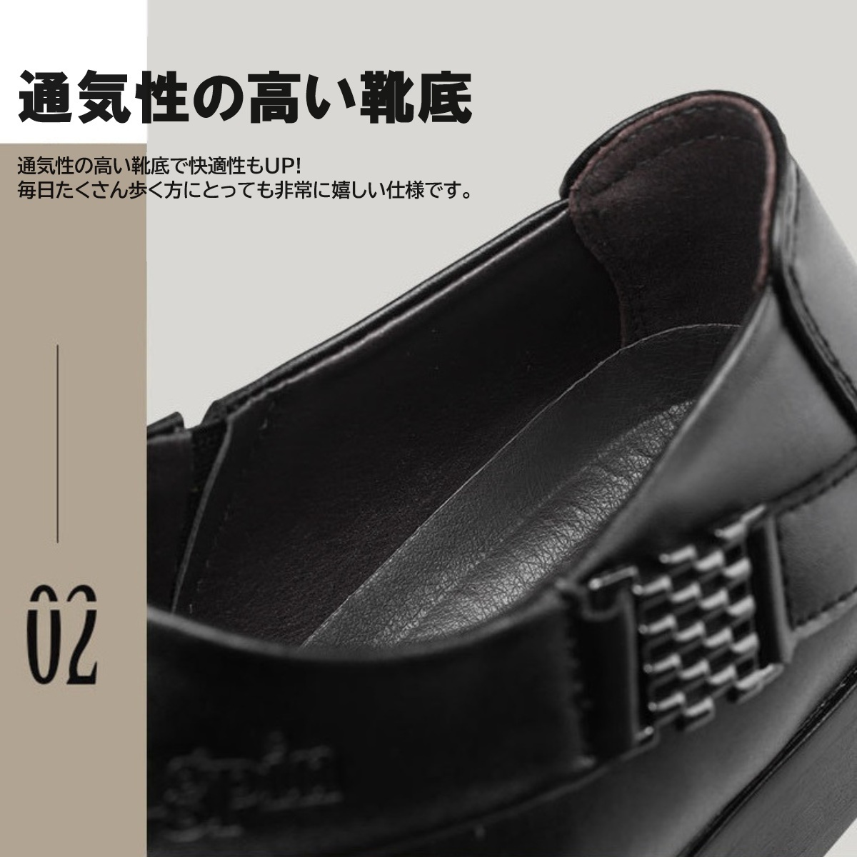 | 商品説明 | 【オンでもオフでも使用可能】洗練されたフォルムは、ビジネスシーンはもちろん、カジュアルスタイルにもマッチする上質な一足です。仕事や通勤、結婚式、就職、学校の入学式や卒業式に問題なく使用できます。また、普段使いとしてカジュアルなコーディネートにも取り入れやすく、オフ日の靴としても大活躍。 【シンプルなデザイン】アッパーはシンプルなデザイン。シンプルでありながらゴムバンドを配置していて、その履きやすさも魅力です。 【滑り止め・耐摩耗・反撥水】滑り止め、耐摩耗、ショック軽減といった機能も満載で、毎日たくさん歩く方にとっても非常に嬉しい仕様。そのうえで、適度な通気性も確保しています。 【履きやすい合皮素材】質感の良い合皮は柔らかい素材で足とぴったりフィット。長い時間の立ち仕事や、散歩などでも足が痛くなりません。 ※ デザインはロットにより多少変更する場合があります。 中国製。格安でご提供するために簡易梱包にご協力ください。 ※スポーツブランドで27.0cmを履かれている方は、SIZE:42(26.0cm)程度とお考え下さい。 |