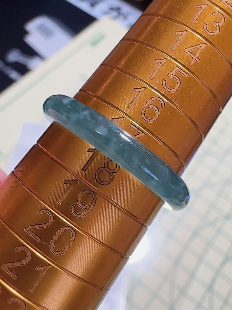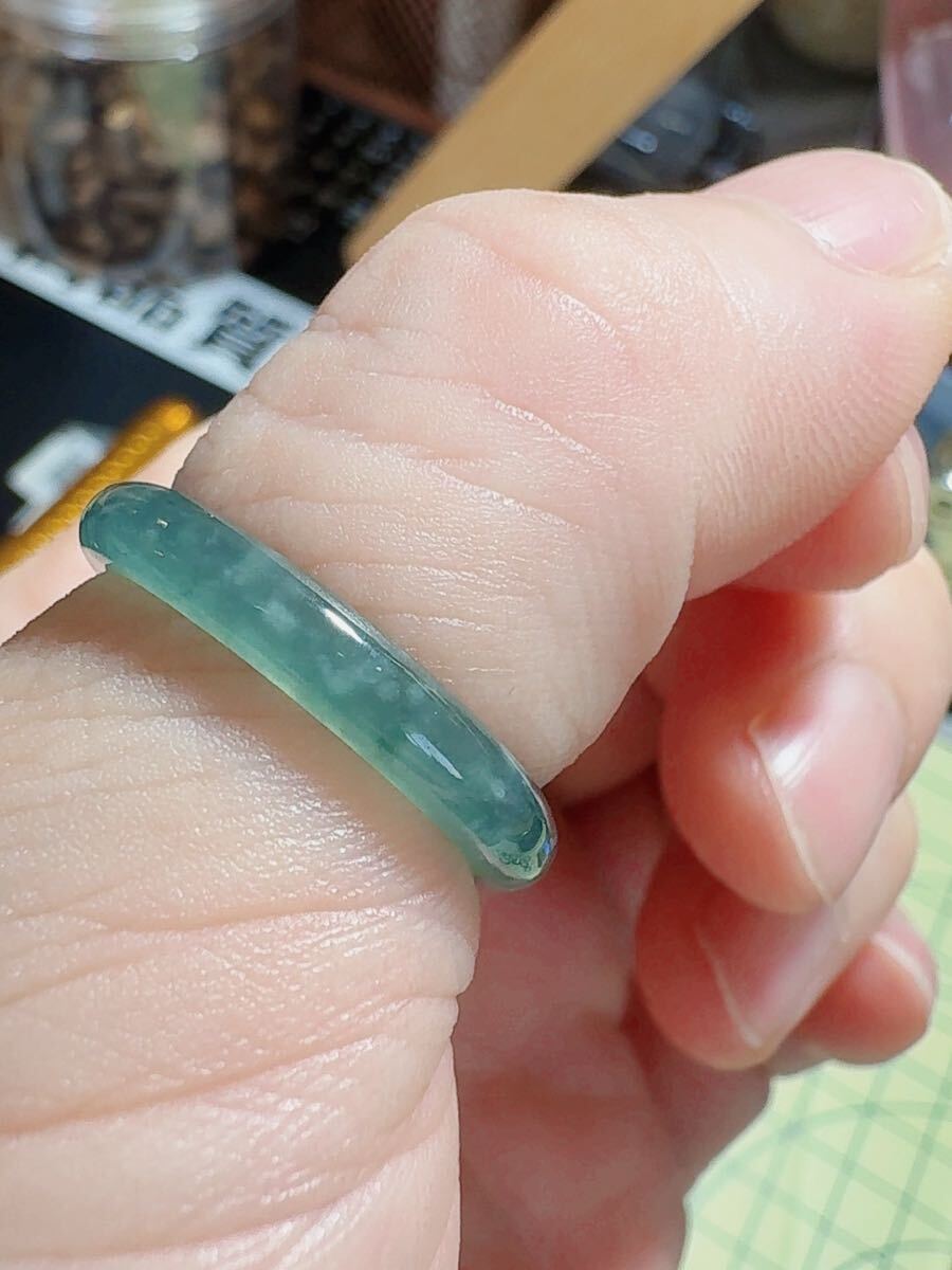 R2-02056-1天然本翡翠《本物保証》 藍水翡翠 指輪約17~18号 一点物 希少 縁起物 お守り 魔除け 昇進 成功 風水 金運 財運 幸運 幸福
