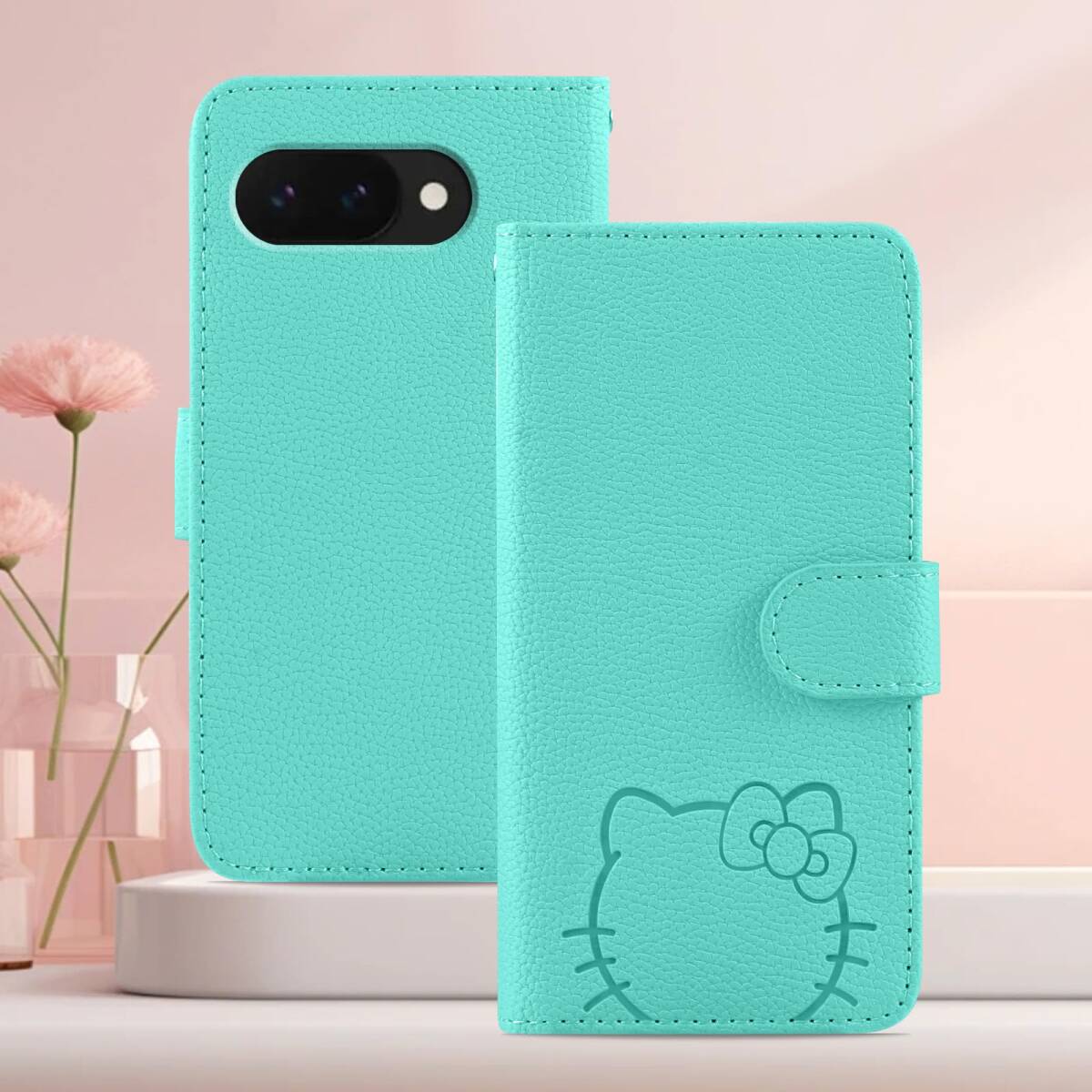 Kedic 対応 Google Pixel 9a ケース 手帳型 大きな花の顔の猫のパターン ぐーくるぴくせる9aケース ピクセル9a カバー Google Pixel9a スマホカバー 手帳型 グーグルピクセル9aケース の選択 指紋なし 適度な厚さ 軽量グリップ 柔軟性 より包括的な保護 スマホ スタンド グリーン