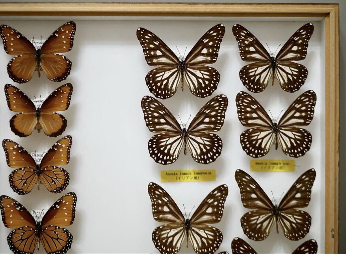 この蝶の標本は、様々な色合いの美しい蝶が整然と配置されています。昆虫標本を収集する愛好家コレクターや、教育目的での使用に最適です。多様な蝶の種類を観察できる貴重なアイテムです。