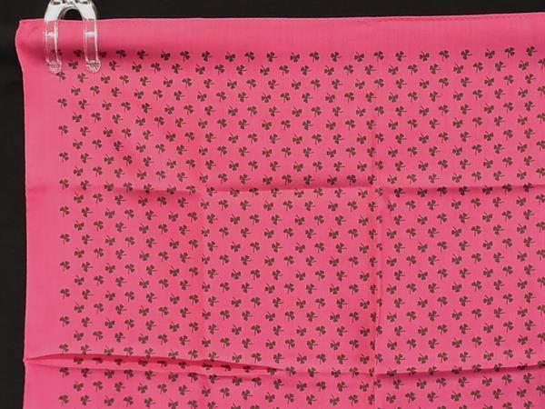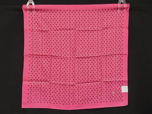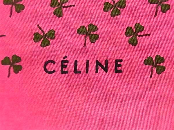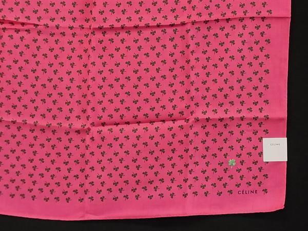 ■新品■未使用■ CELINE セリーヌ コットン100% クローバー 四つ葉 スカーフ ハンカチーフ マゼンタピンク系×グリーン系 DG6069
