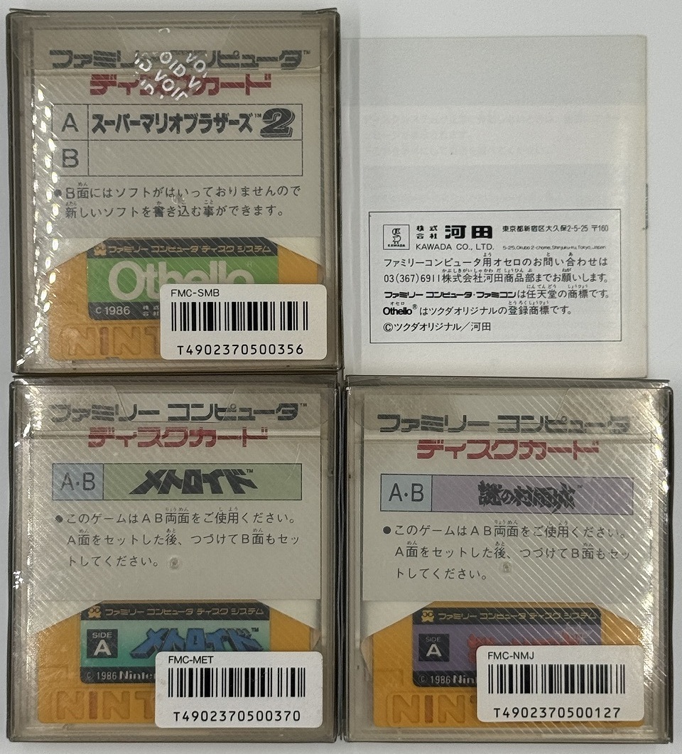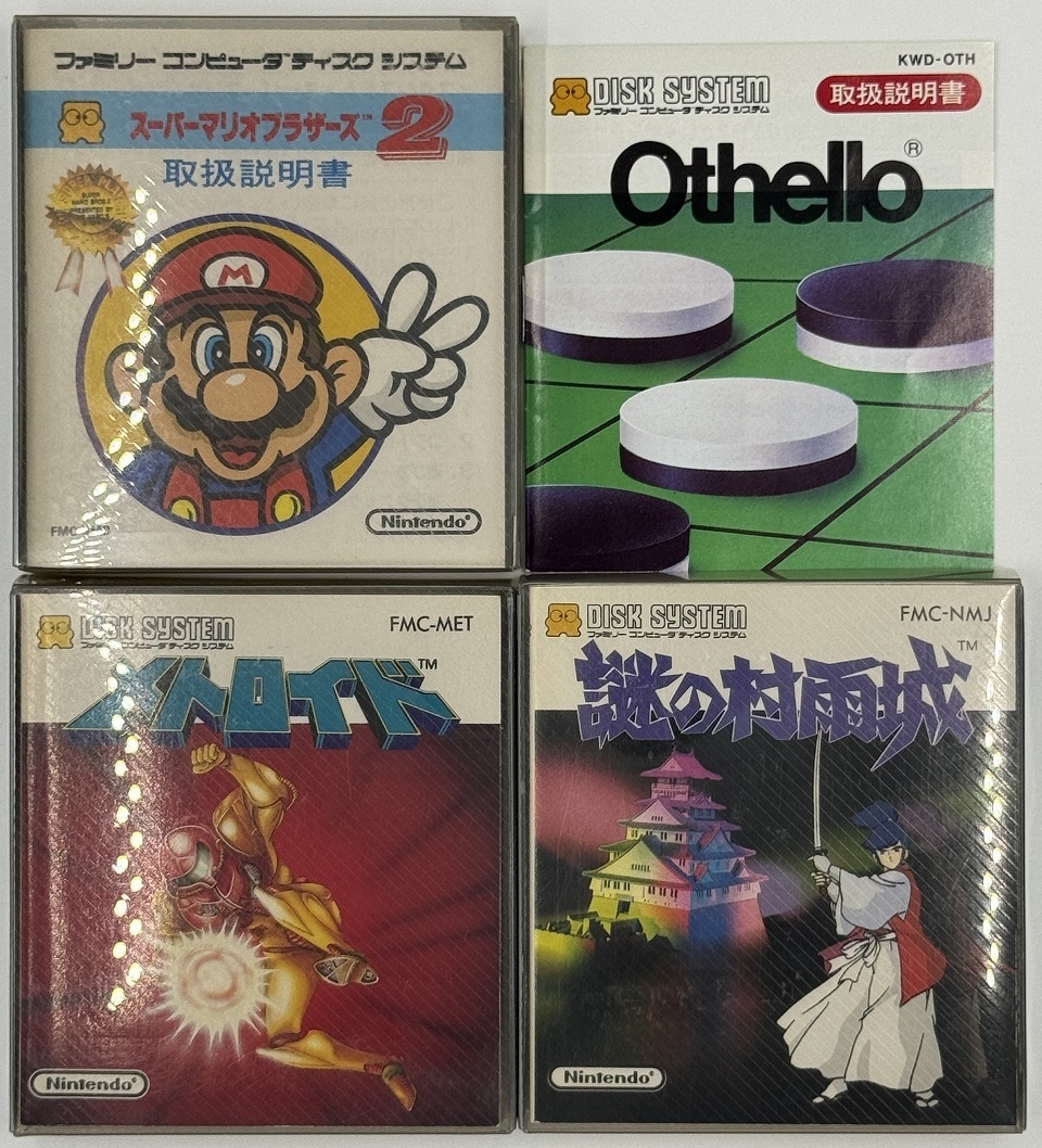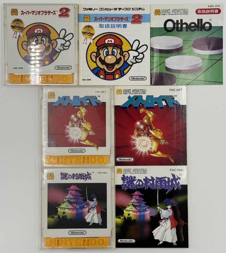 Nintendo/ 任天堂:スーパーマリオブラザーズ2/ メトロイド/ 謎の村雨城 & 河田:オセロ(書換版) ファミコンディスク3枚4種SET 中古