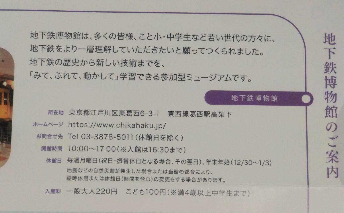 ③地下鉄博物館無料招待券×5枚 【有効期限2026.6.30】