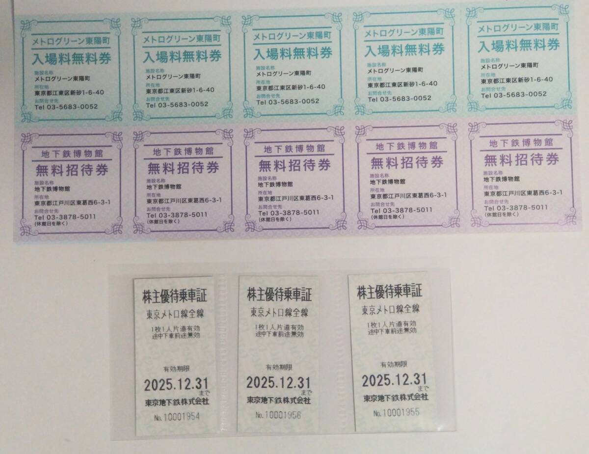 ①東京メトロ線全線片道乗車証×3枚 【有効期限2025.12.31】