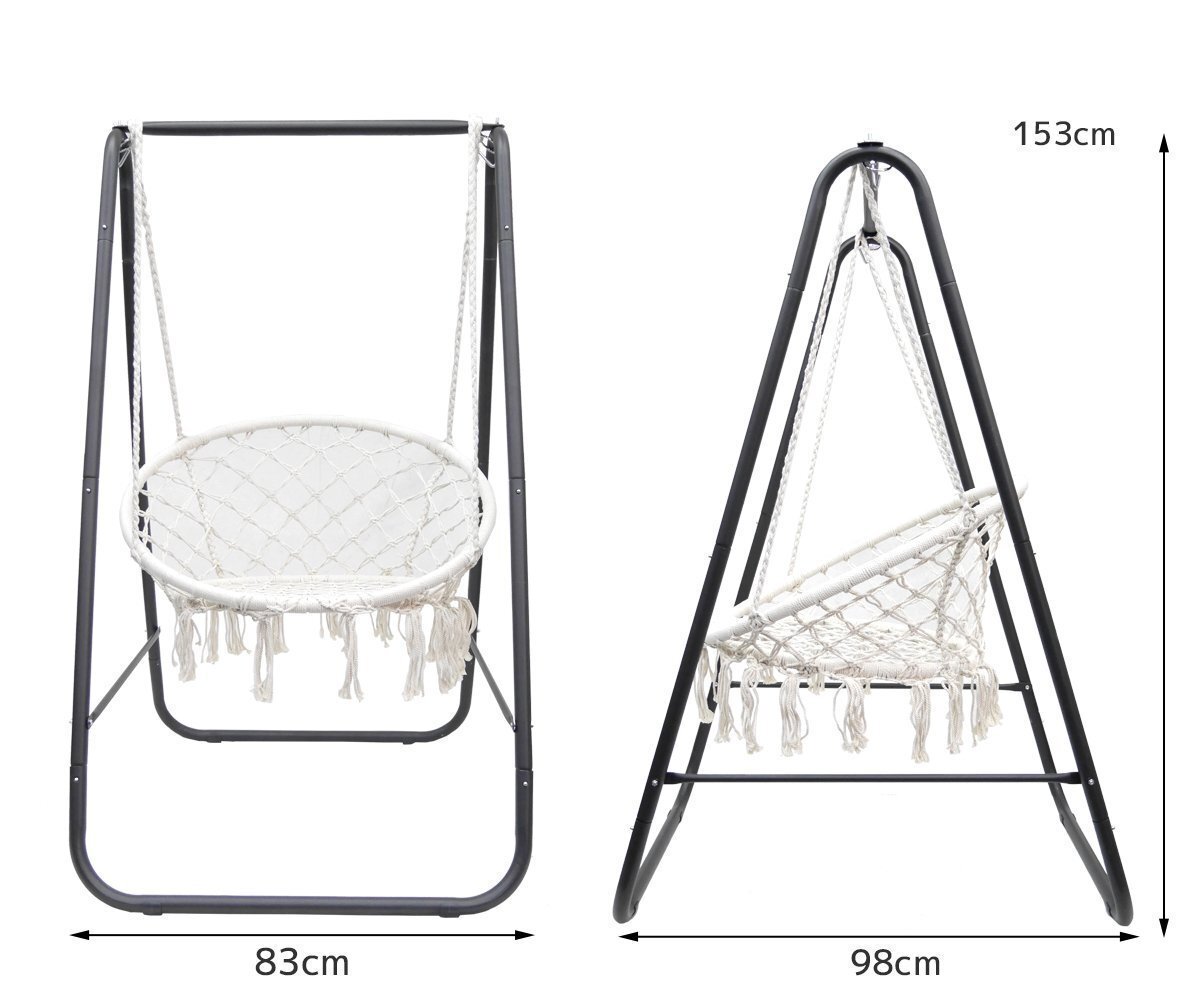 自立式 ハンモックチェア ガーデンブランコ ハンギングチェアスタンド ロープ アウトドア インテリア 室内 ベランダ おしゃれ HC-04WH