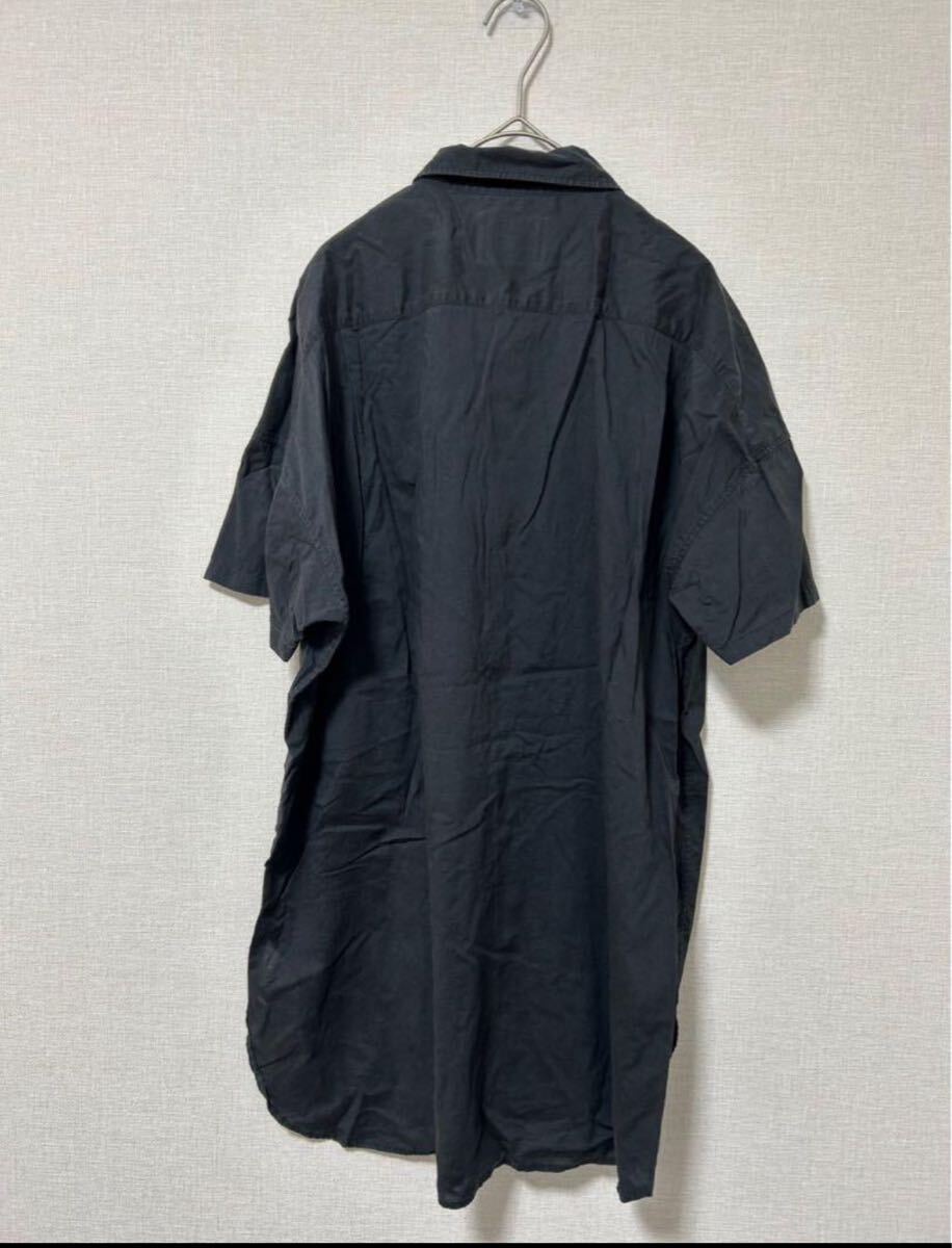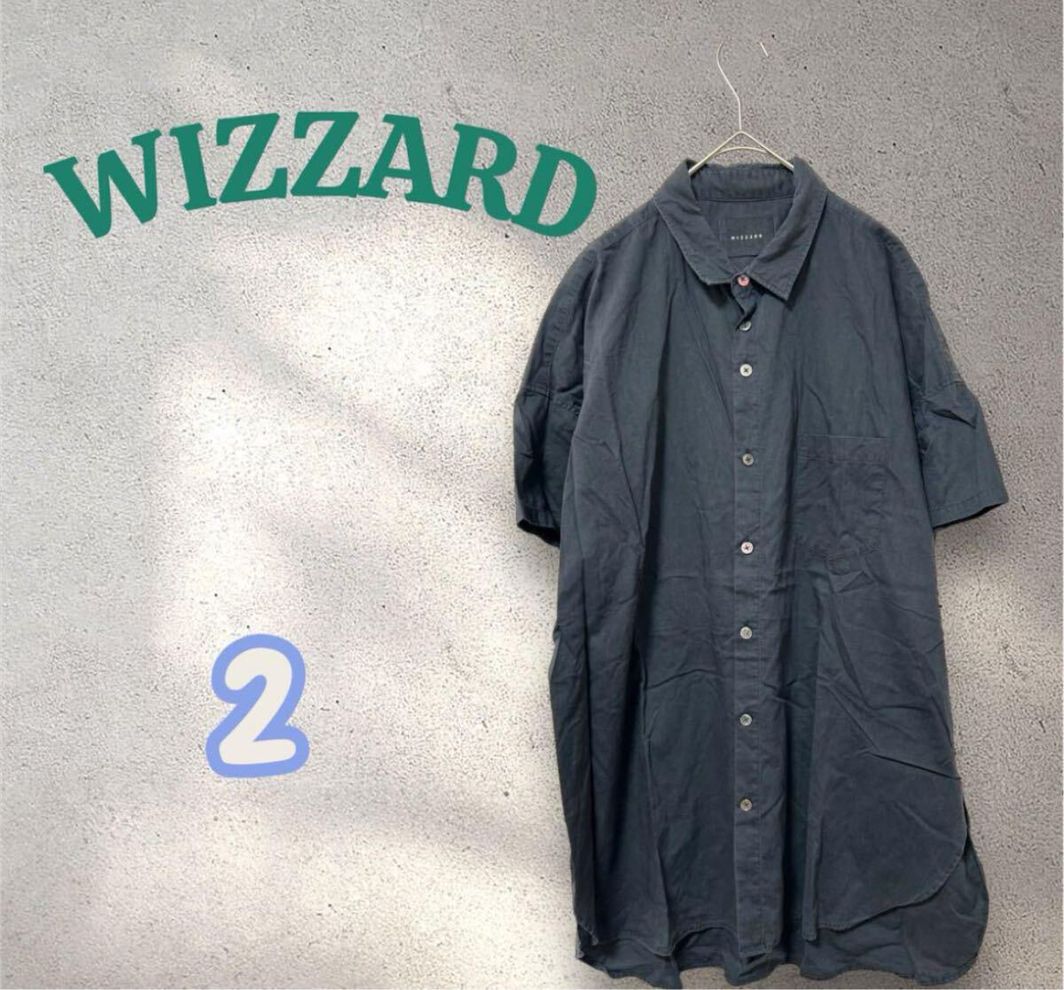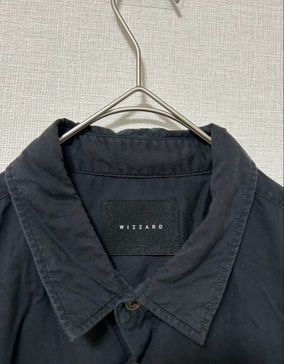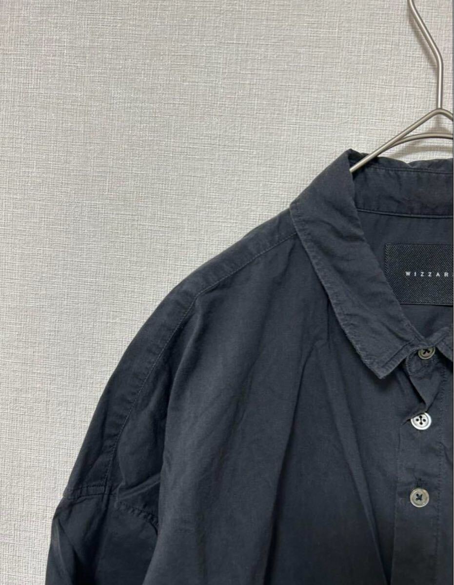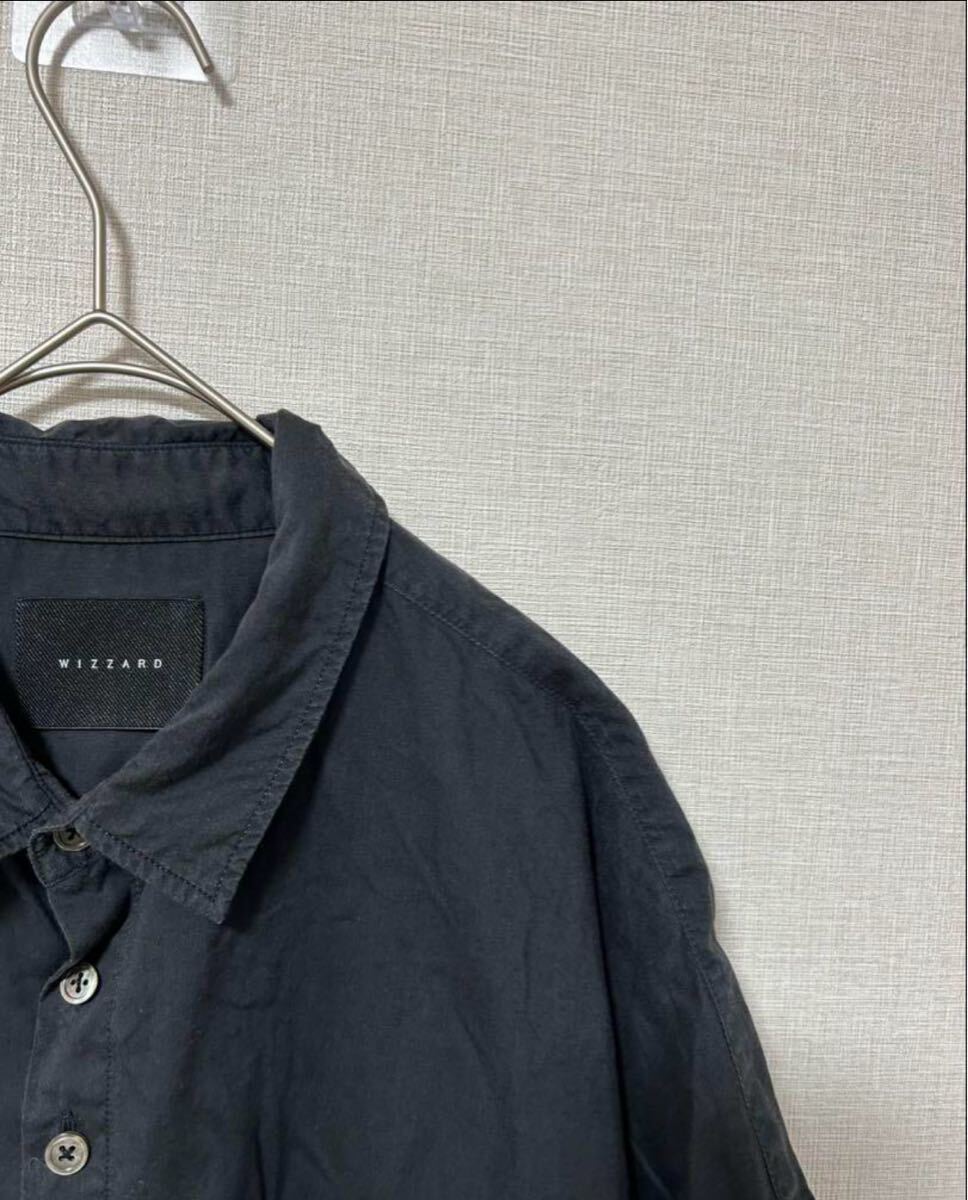 ダークグレーのWIZZARD半袖シャツ、ボタン付きでゆったりしたシルエット。