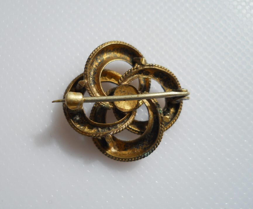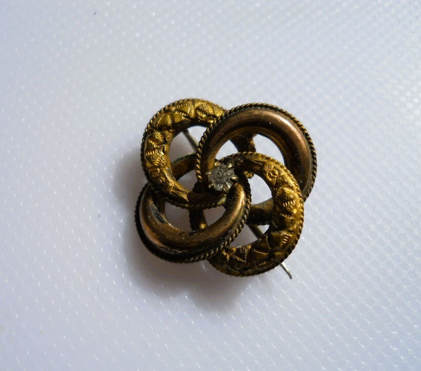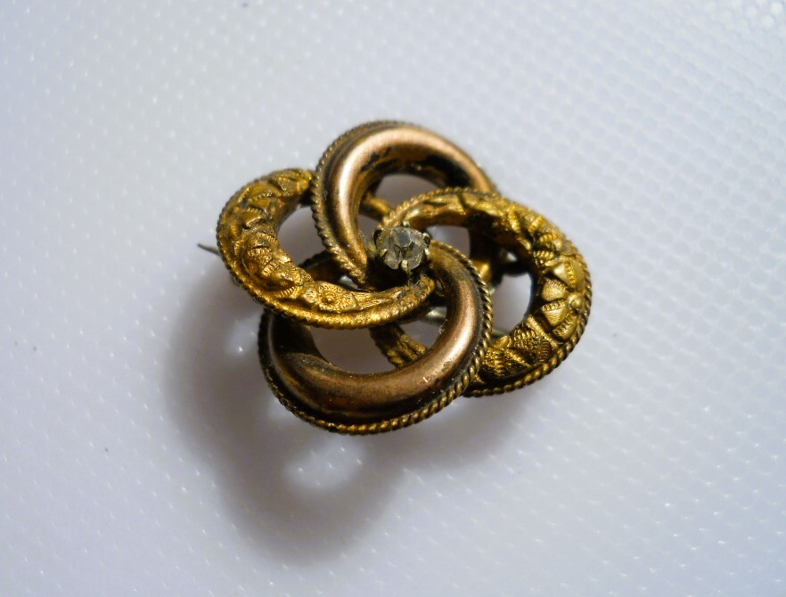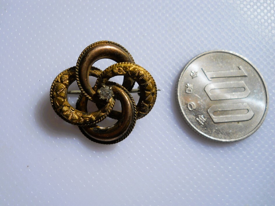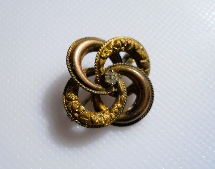 英国アンティーク 小さなヴィクトリアン ブローチ 伝統的 恋人結び ラバーズノット ロールゴールド