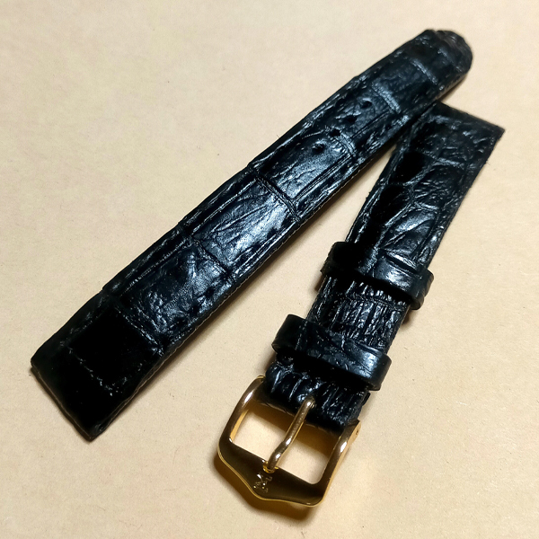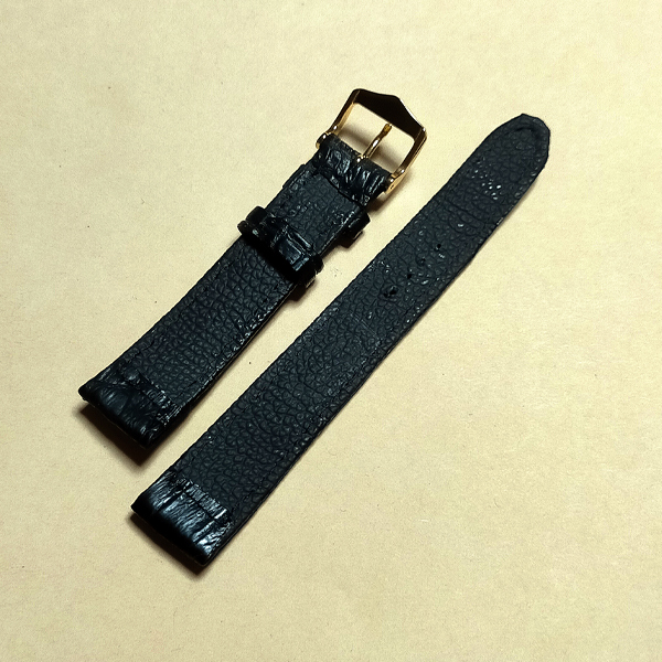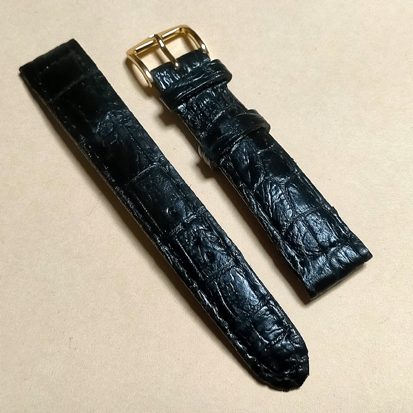 18㎜/本革クロコダイル■ 黒色■金尾錠 /竹符鱗/ 47☆送料込//即決