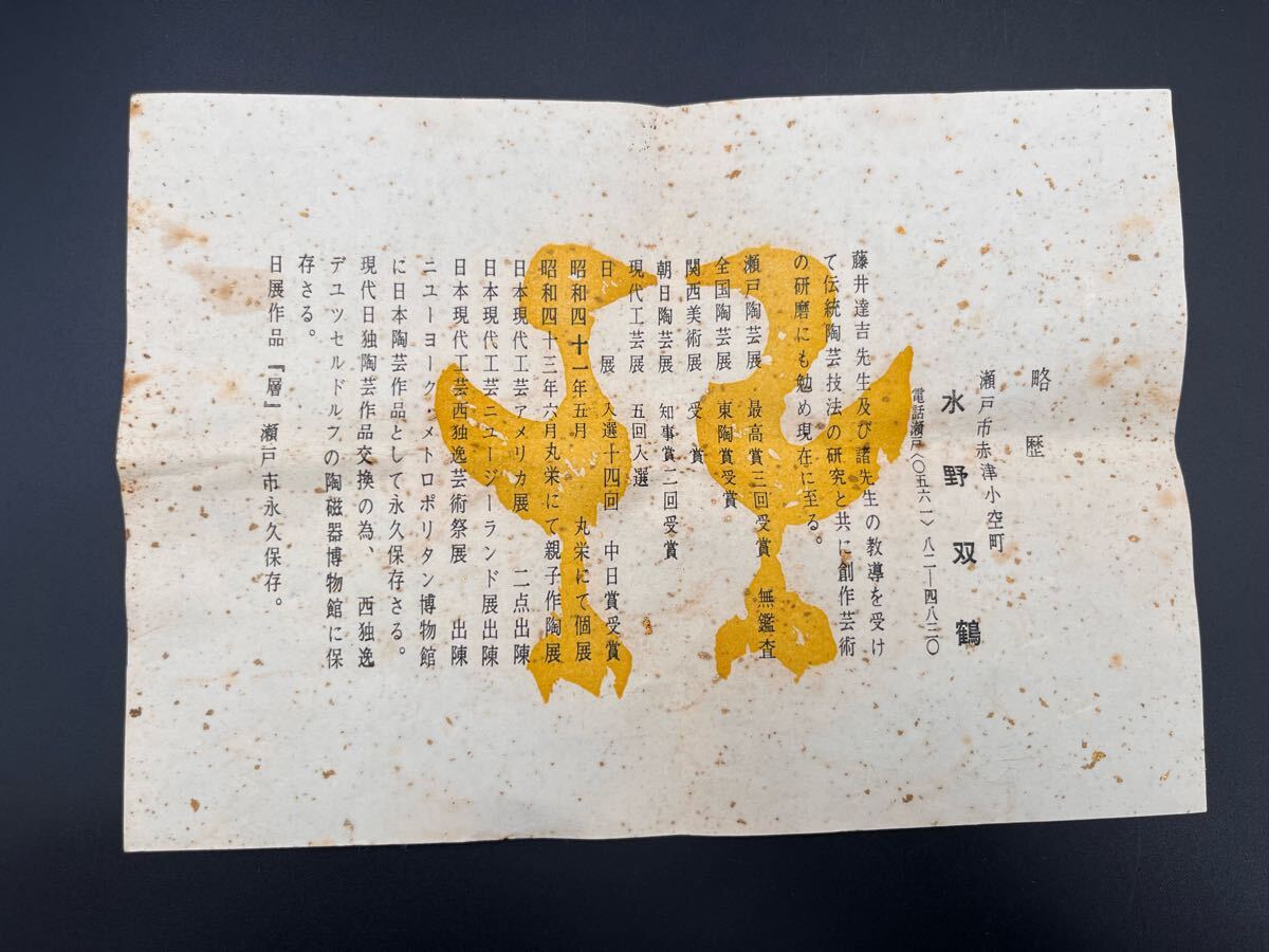 abse091910 瀬戸焼 水野 双鶴 作  茶碗 茶道具