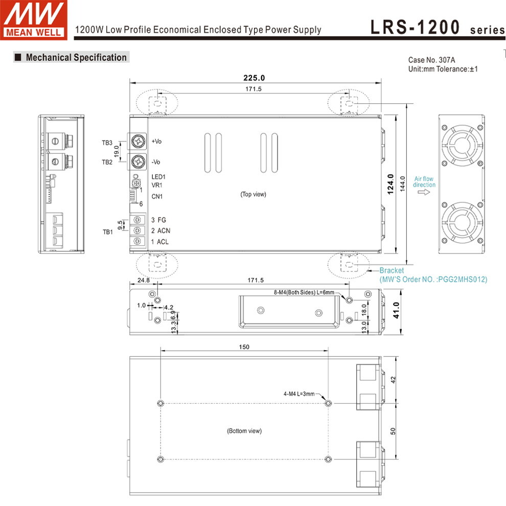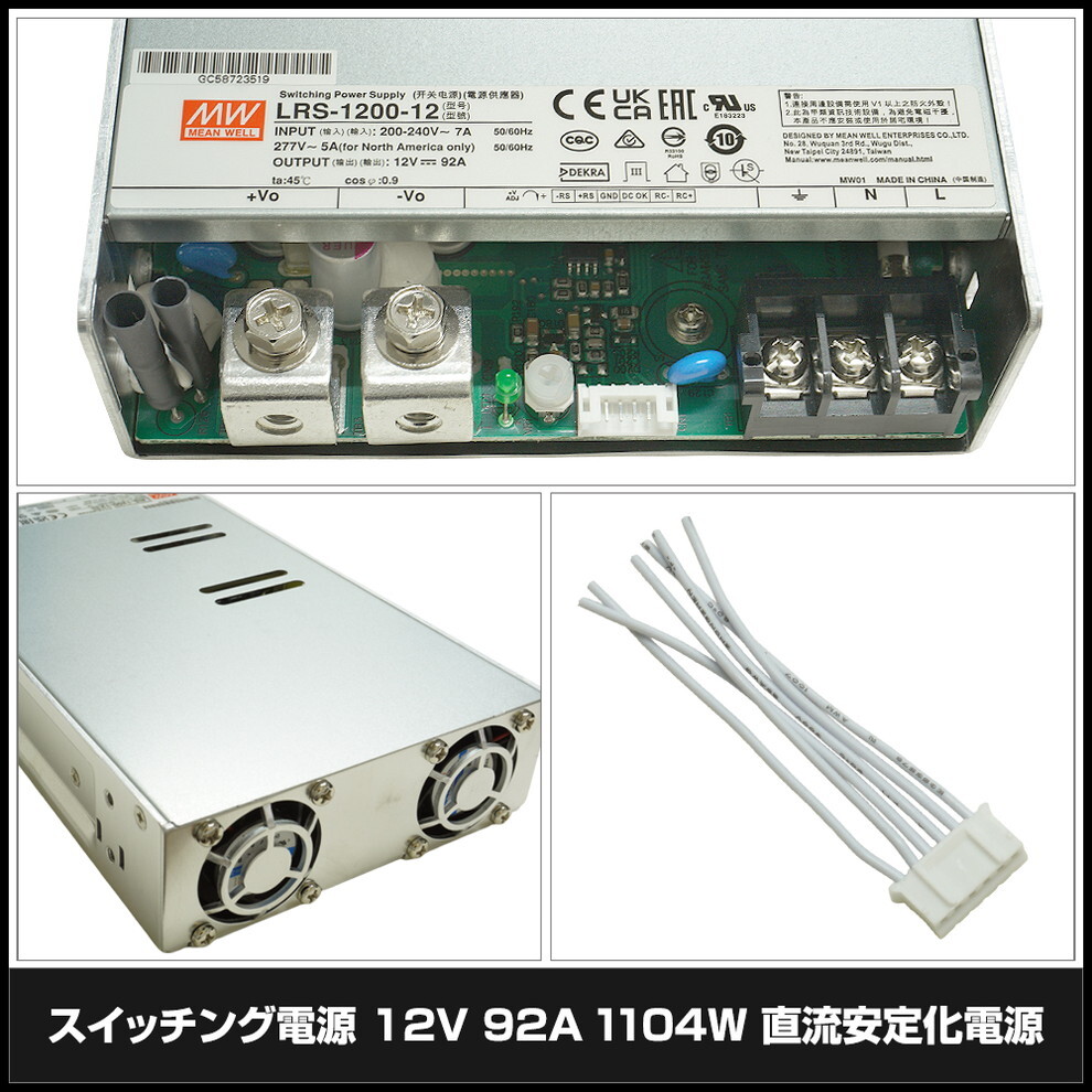 4520 スイッチング電源 12V 92A 1104W 直流安定化電源 Meanwell LRS-1200-12 メタル製 | 1個 |