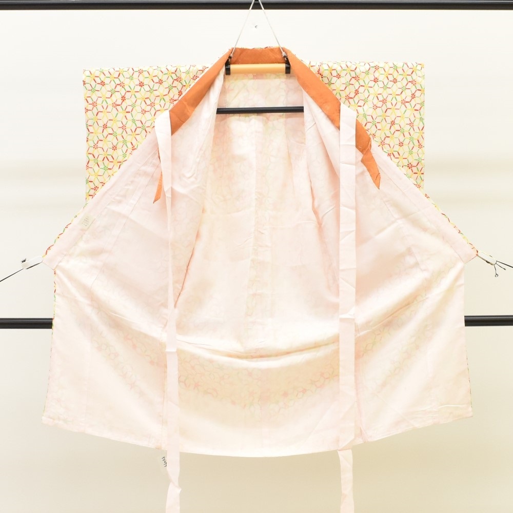 【サイズ】着物 : 身丈(肩から)99.5cm 裄丈39cm 袖丈58cm 肩上げ 約9cm ※長襦袢は着物のサイズに合わせてあります 【素材】着物 : 化繊 【商品説明】白色に幾何学文様が施された可愛らしい着物と襦袢のセットです 重ね衿と腰紐がついています。 【ランク】 着物:表 AA~A 裏 AA 【シミ汚れ等の状態】 表裏共に多少のシミ汚れがあります。 ※長襦袢につきましては詳細な検品をしておりません。予めご了承下さいませ ★サイズについて サイズに関しましては一品ずつ手で測っており、お着物や帯の性質上生地の伸縮性もございますので、 若干の誤差がある場合が多々ございます。 2cm未満の場合は、誤差となりますので大変申し訳ございませんが返品は承っておりません。予め御了承下さい。 |