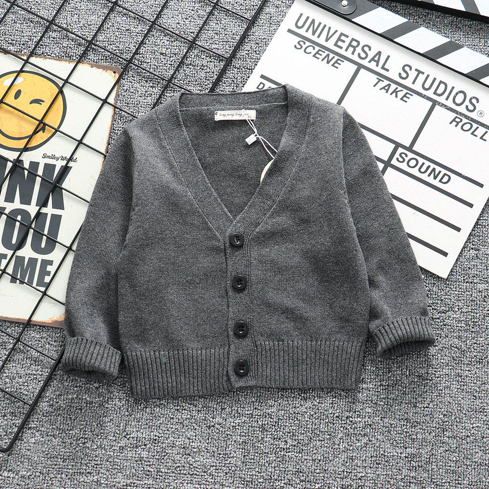 ☆ ダークグレー ☆ 110cm ☆ カーディガン キッズ lyca287 カーディガン キッズ 中厚 羽織り 羽織 長袖 綿100% フォーマル Vネック 無地