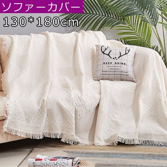 ソファーカバー 北欧風 綿 無地 両面使える 四季適用 爪とぎ防止 汚れ防止 キズ防止 柔らかい 滑り止め (130*180cm)☆デザインA