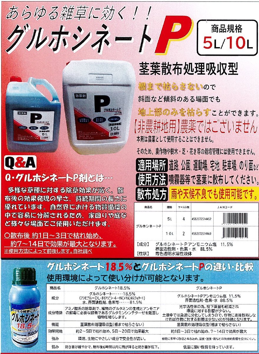 【仕様】地上部のみ枯らす ノズル別売り グルホシネートP