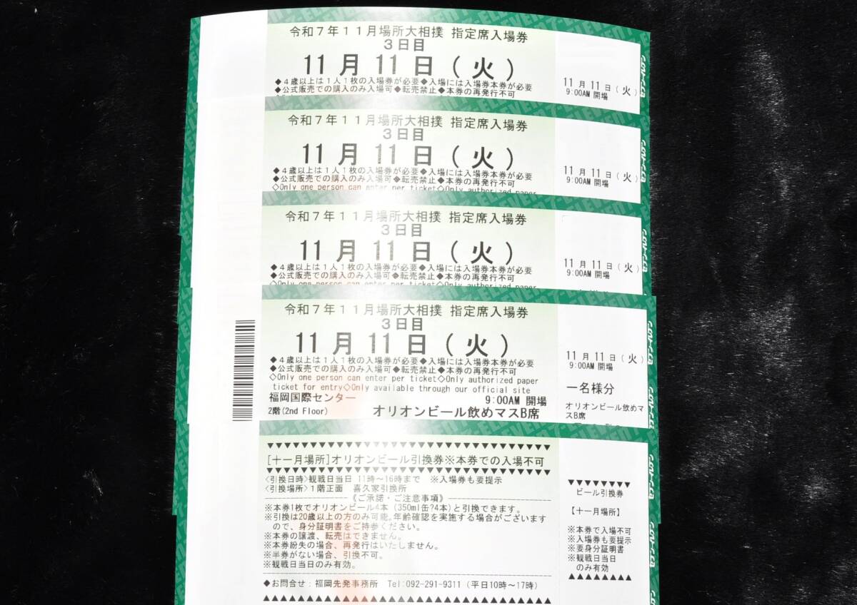 令和七年 大相撲九州場所(十一月場所) 11/11(火) マス席紙チケット 福岡国際センター オリオンビール飲めマスB席(38,000円) 開始価格5円~